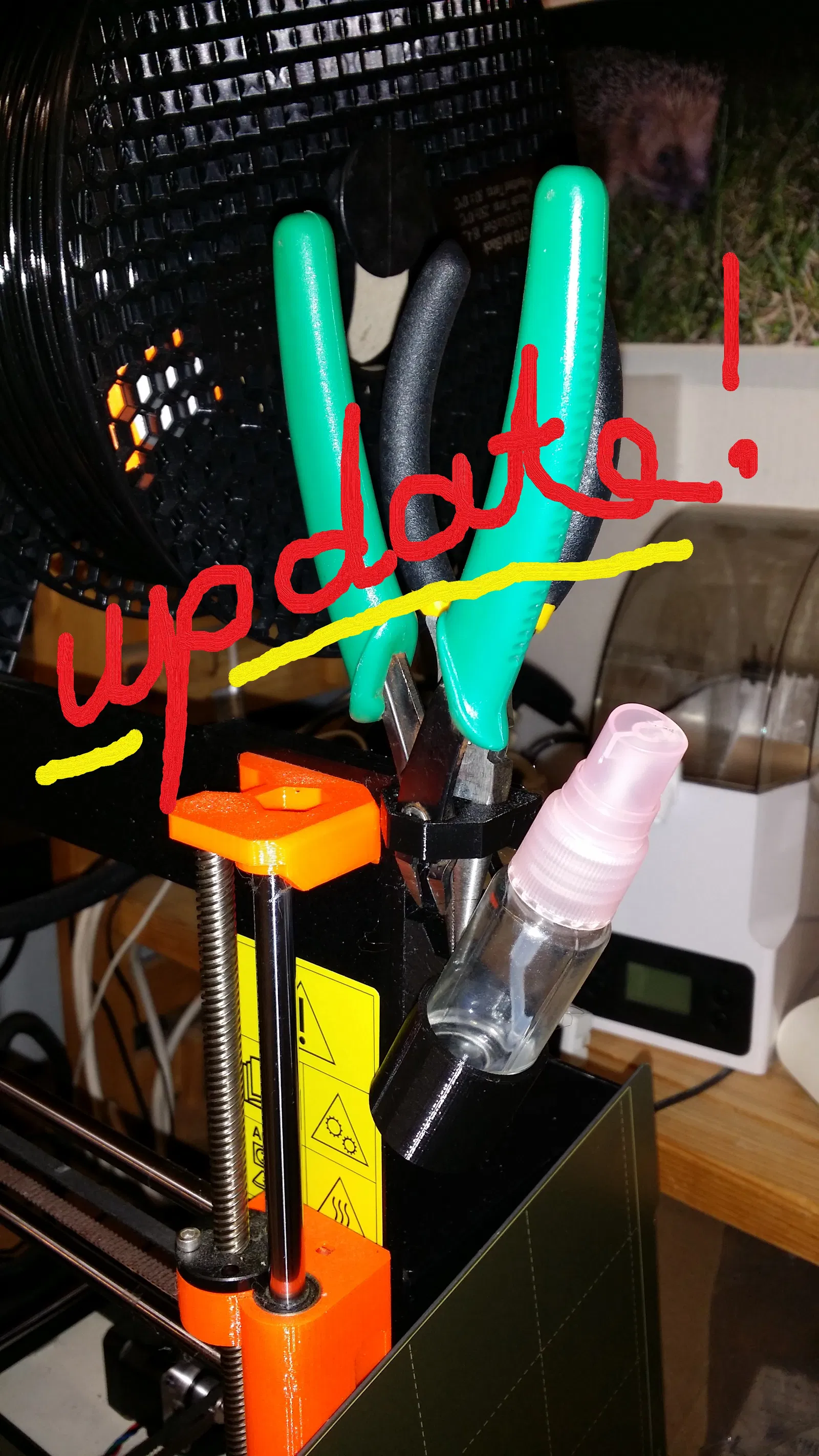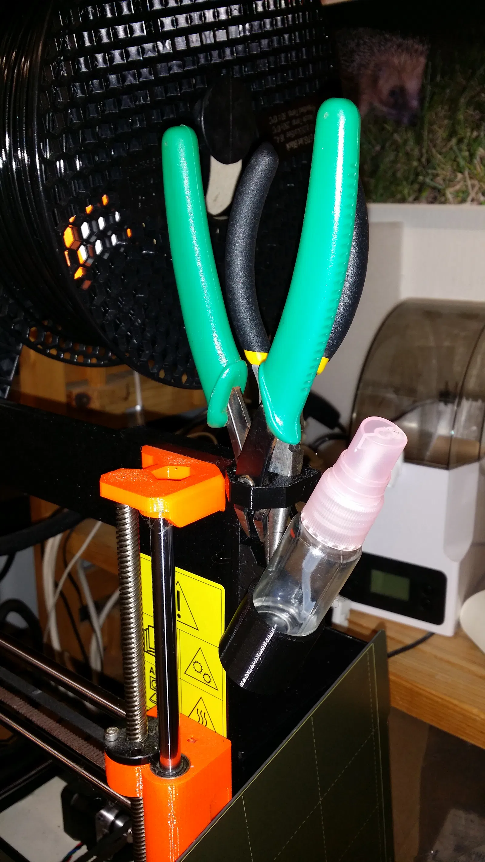 Để những dụng cụ cần thiết nhất ngay trên máy in của bạn! Model này gồm 3 phần, một phần gắn vào máy và hai phần còn lại gắn vào phần đó. Bản cập nhật mới giúp giá đỡ bám chắc hơn vào máy in. Có file STL và STEP để tùy chỉnh. Hướng dẫn in chi tiết cho khớp nối đuôi én và vật liệu PETG đen.