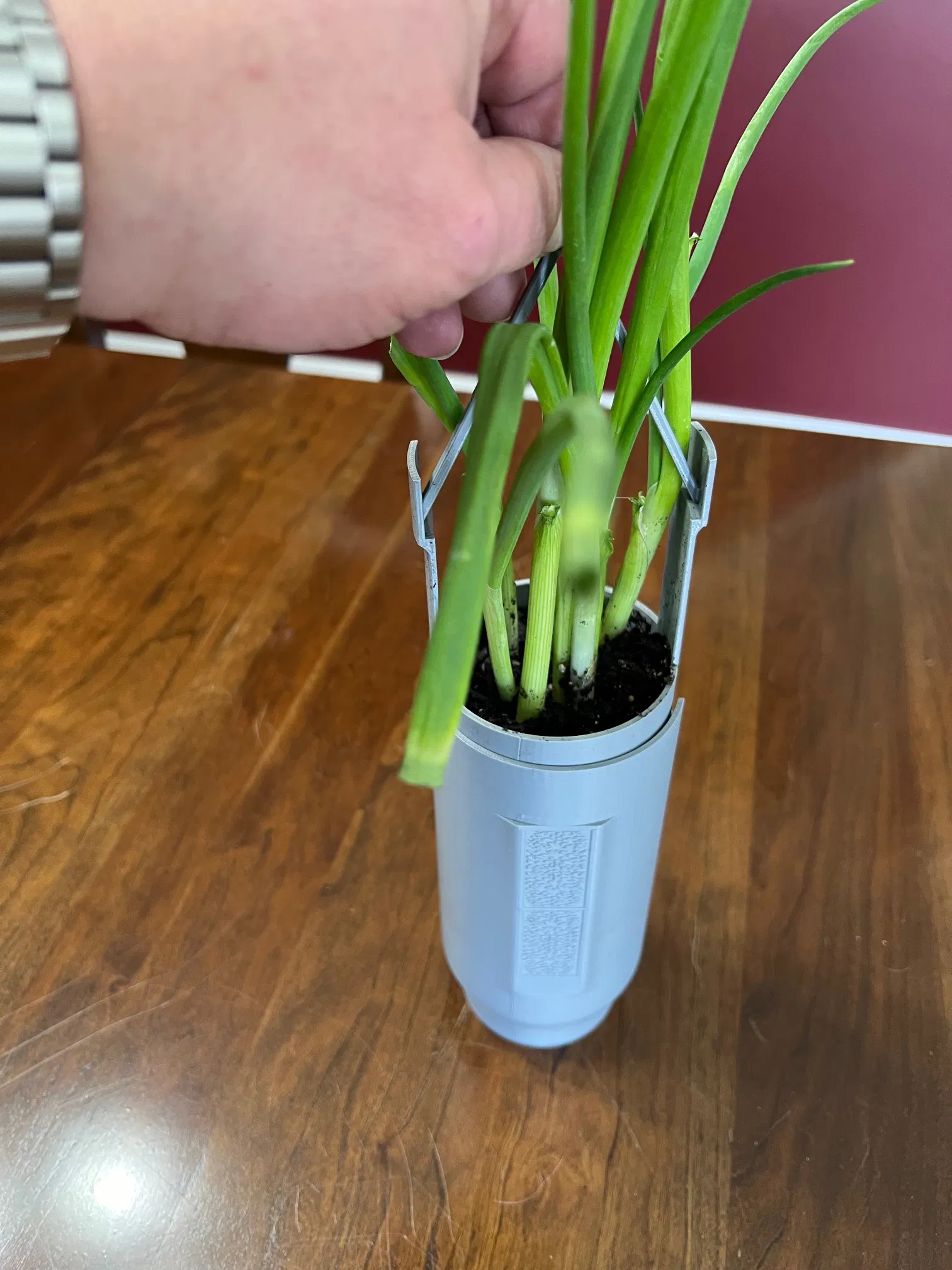 Chậu tròn được thiết kế đặc biệt cho hành lá. Nó có một cái tay cầm ở trên để bạn có thể nhấc chúng ra khỏi chậu để cắt ăn khi nấu ăn!