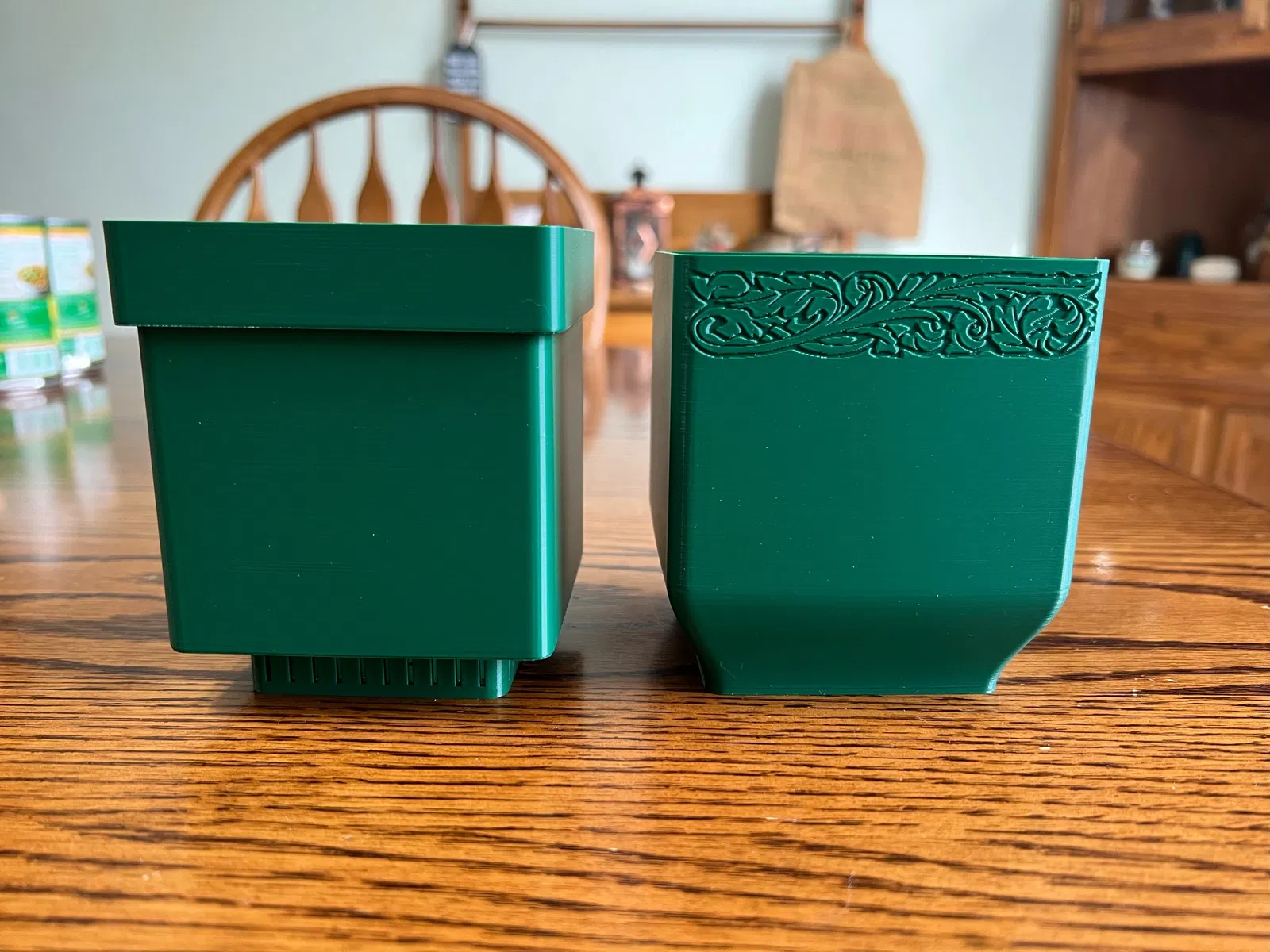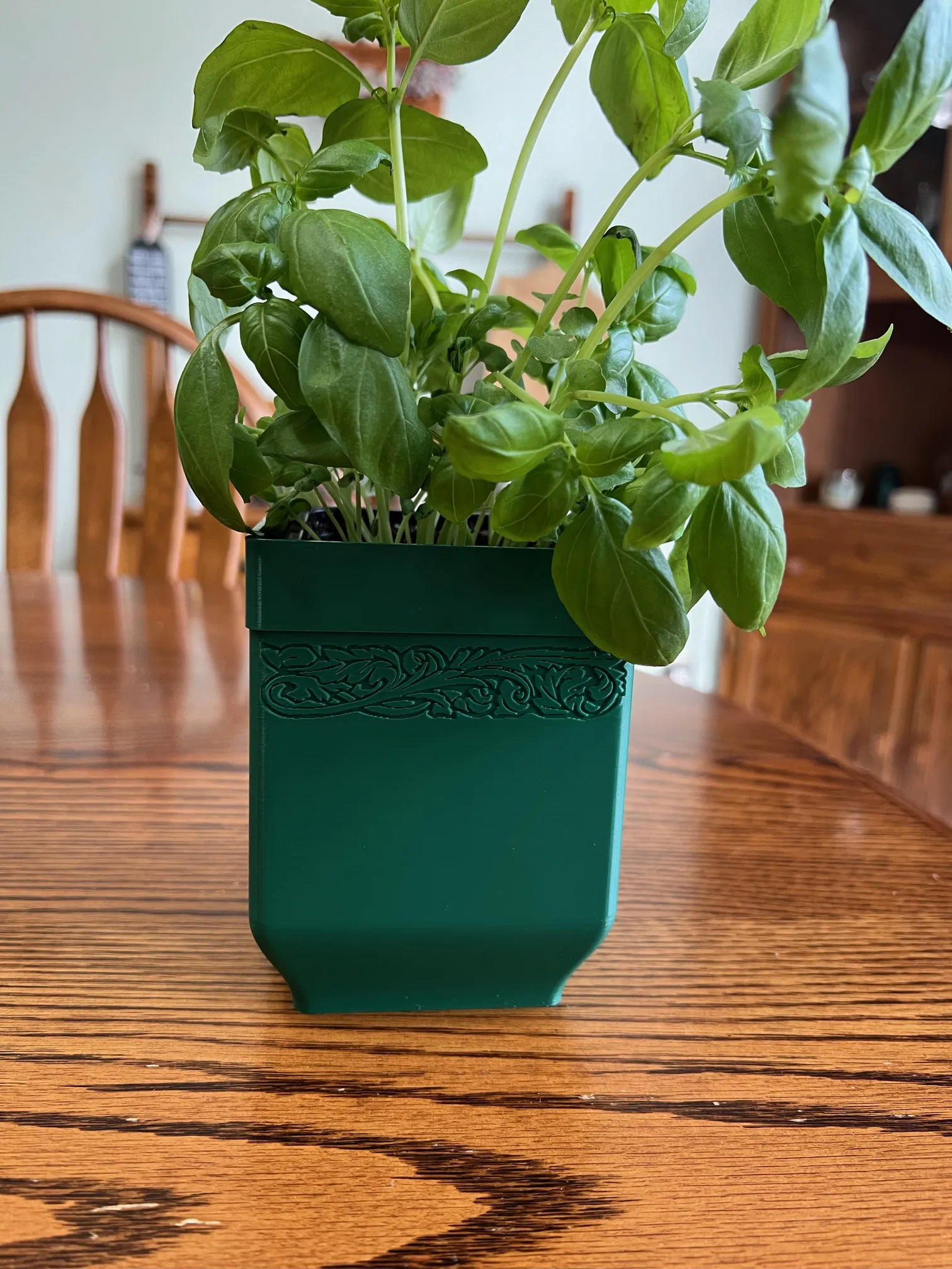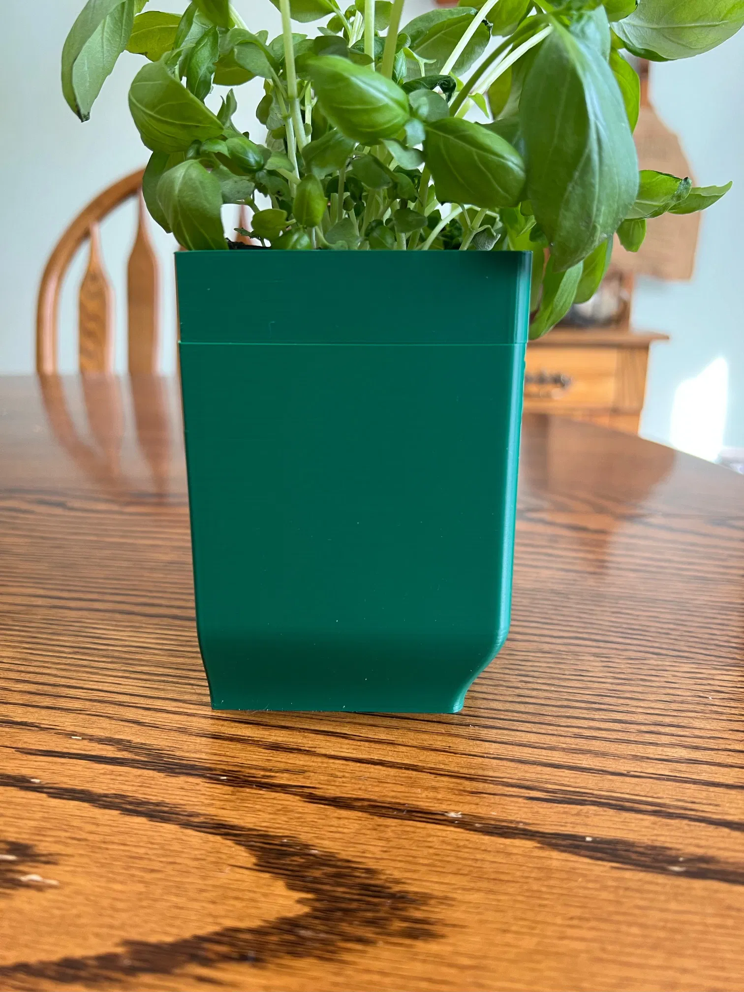 Chậu vuông được thiết kế cho cả cây thảo mộc hoặc cây mọng nước nhỏ. Nó có một mặt phẳng để có thể đặt trên bệ cửa sổ mà không cản trở việc đóng/mở cửa sổ.