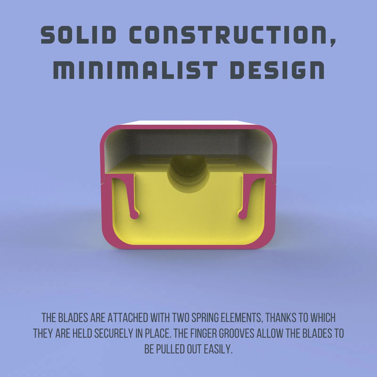 Cấu trúc chắc chắn, thiết kế tối giản Các lưỡi dao được gắn bằng hai bộ phận lò xo, nhờ đó chúng được giữ chắc chắn tại chỗ. Các rãnh ngón tay cho phép lấy lưỡi dao ra dễ dàng.