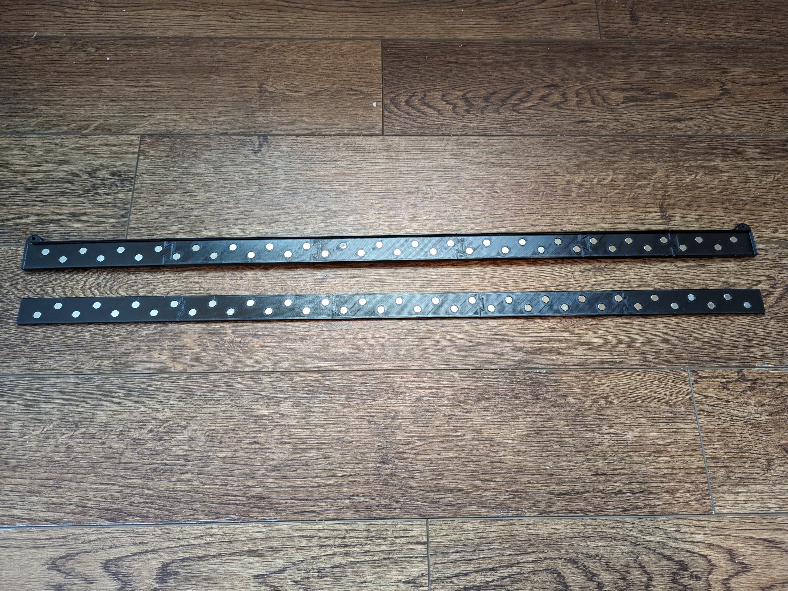 Thiết kế này dùng cho các poster có chiều rộng tối đa 841mm (+-1mm) và sử dụng 80 viên nam châm 8x2mm để kẹp poster giữa các bộ phận A và B. Lỗ nam châm có đường kính 2.1mm, nên nam châm sẽ được giữ bằng lực ma sát và không cần keo (tùy máy in của bạn).