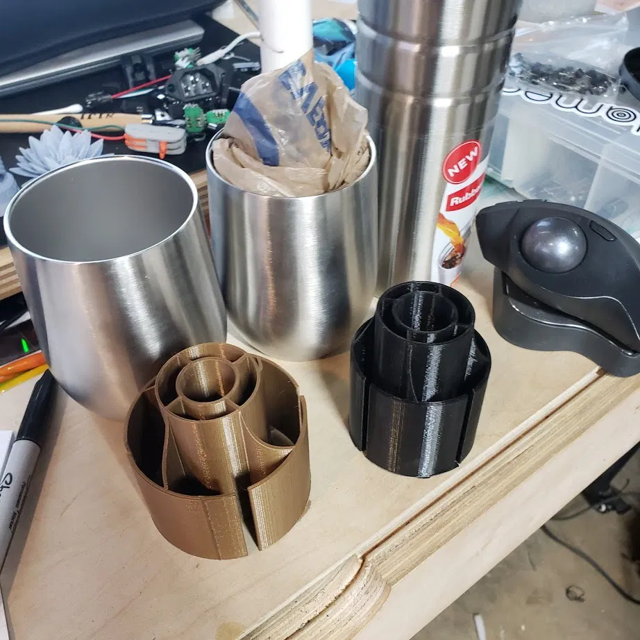 Hình dáng này giúp tạo lực ép và giữ chặt vào đường kính bên trong ly của bạn. Tui có tải lên 2 cái tui xài thiệt nè. Một cái cho ly kiểu rượu vang và một cái cho ly cà phê Rubbermaid. Mấy cái này xài ngon lắm, in tùy theo cài đặt thì mất vài tiếng đồng hồ.