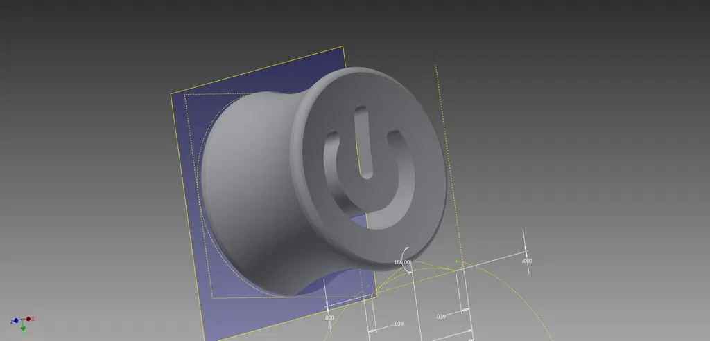 Khuôn nút nguồn cho tai, hiện có kích thước 5/8 inch. Có thể scale được. Ý tưởng là làm nút nguồn cho máy tính giả lập bằng mạch LED PWM. Kích thước nhỏ gọn, phù hợp cho người thích độc lạ.