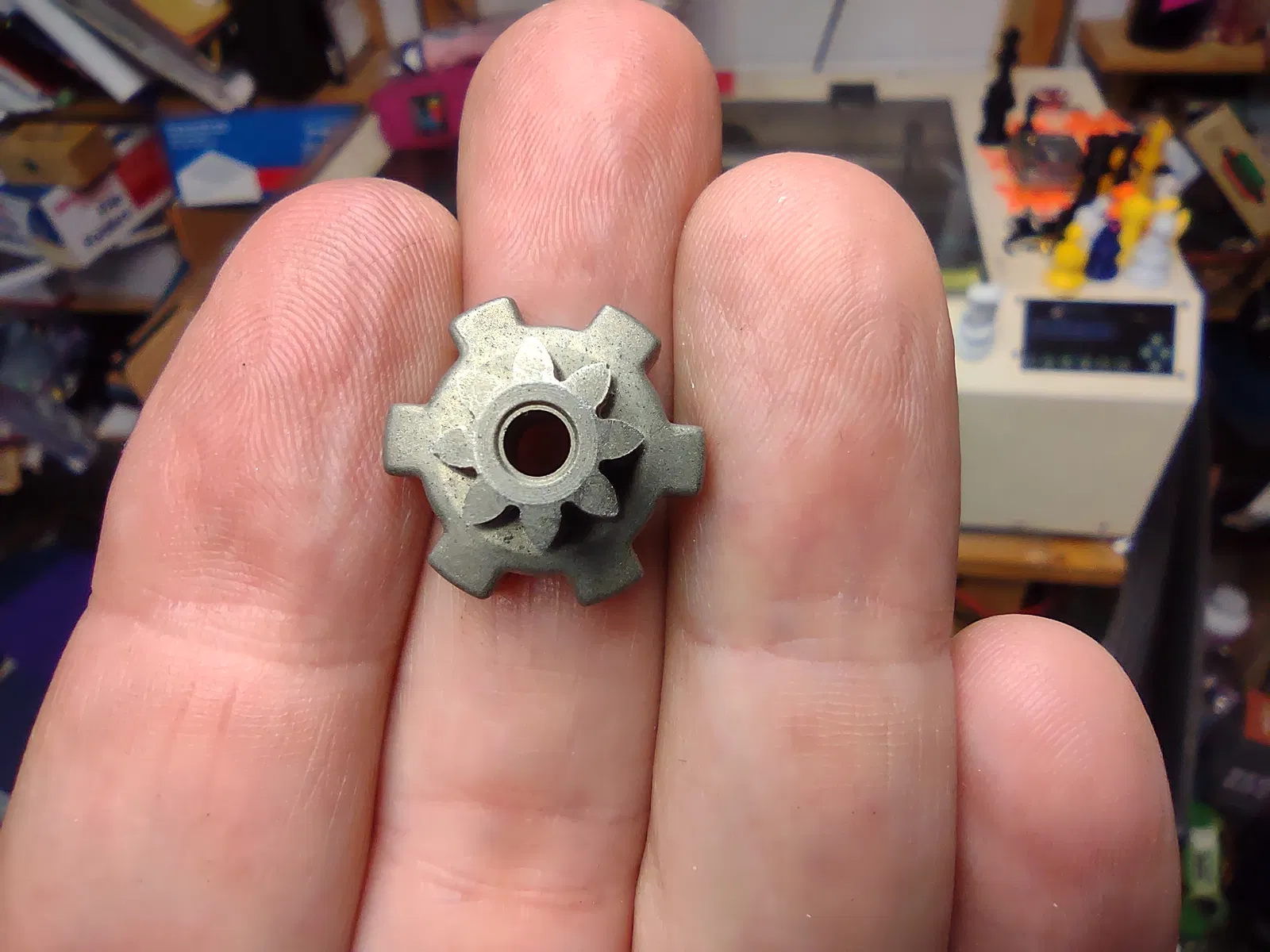 Tôi không thể tháo lưỡi cưa ra khỏi máy cưa của mình khi cơ chế xoắn tay nắm bị tuôn ren. Tôi phải cạy cái tay nắm nhựa màu đen ra để lộ ra một hệ thống bánh răng hành tinh. May mắn là tôi tìm thấy cả ba bánh răng hành tinh nhỏ. Bộ phận thay thế có giá 25 đô la trên Amazon, nhưng tôi đã có thể tái sử dụng các bánh răng kim loại và quay trở lại hoạt động với bản dựng này. Đúng là, việc lắp ráp lại khá khó khăn, nhưng thật ngạc nhiên là nó thực sự hoạt động! Tôi đã không sao chép cơ chế xoắn, vì vậy hãy cẩn thận đừng siết quá chặt.