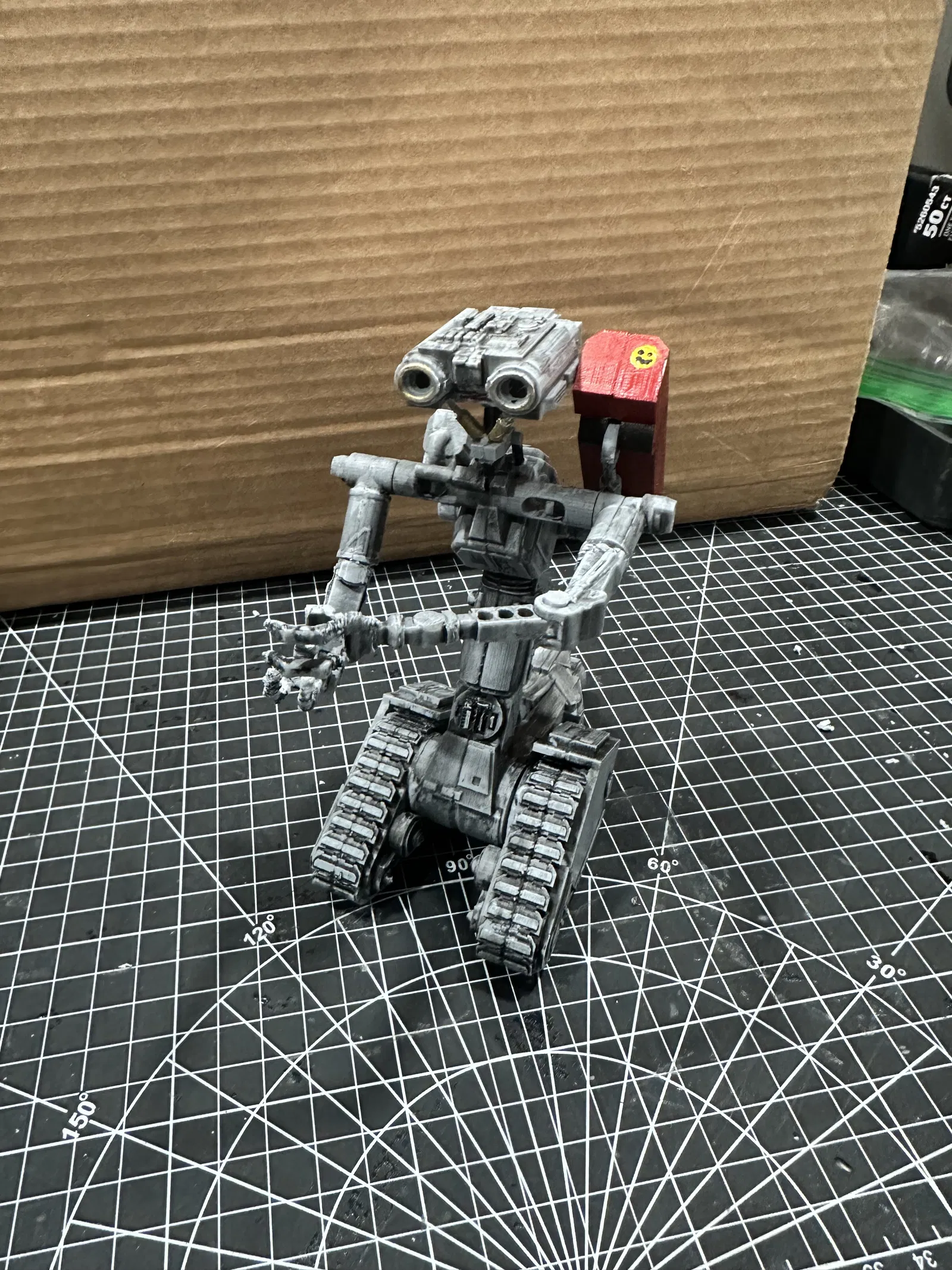 Mô hình Johnny 5 được tùy chỉnh, chia nhỏ các bộ phận và thêm hỗ trợ để dễ in hơn. Hoàn hảo cho fan của Short Circuit muốn tái hiện robot Johnny 5.