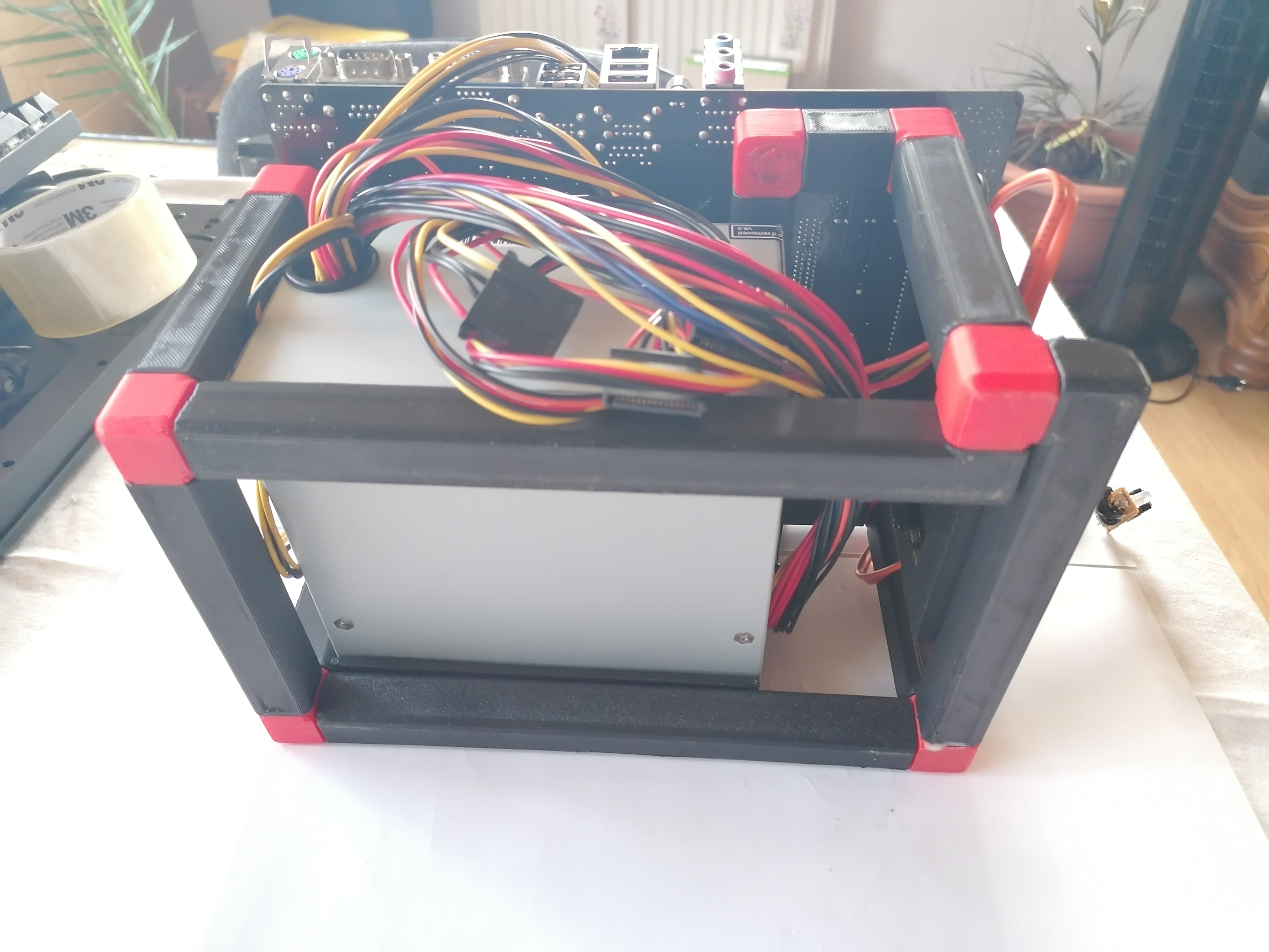 Một cái khung đơn giản với các khe để gắn mainboard micro ATX. Có chỗ gắn PSU ở dưới và chỗ gắn HDD / SSD 2,5