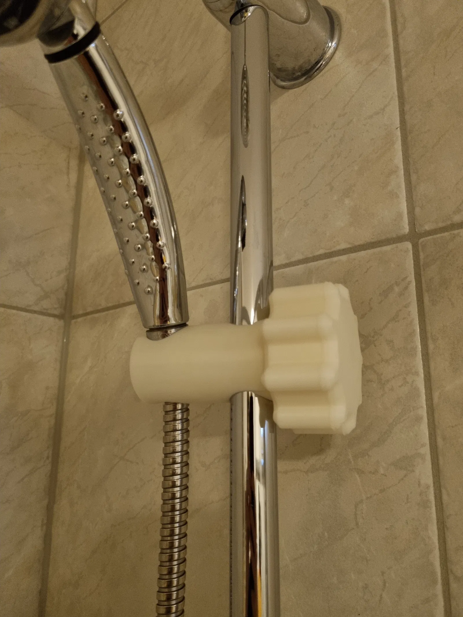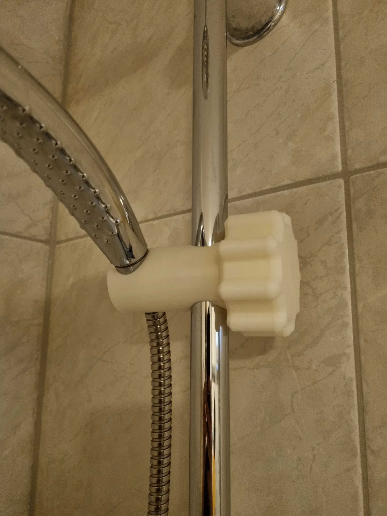Kệ để đầu vòi sen, dễ dàng điều chỉnh vị trí. Mẫu in 3D này rất hữu ích cho phòng tắm nhà bạn, vừa vặn với trục 22mm. Có thể in bằng ABS, PLA, hoặc PETG. Cần thêm ốc và long đền M5 để hoàn thiện.