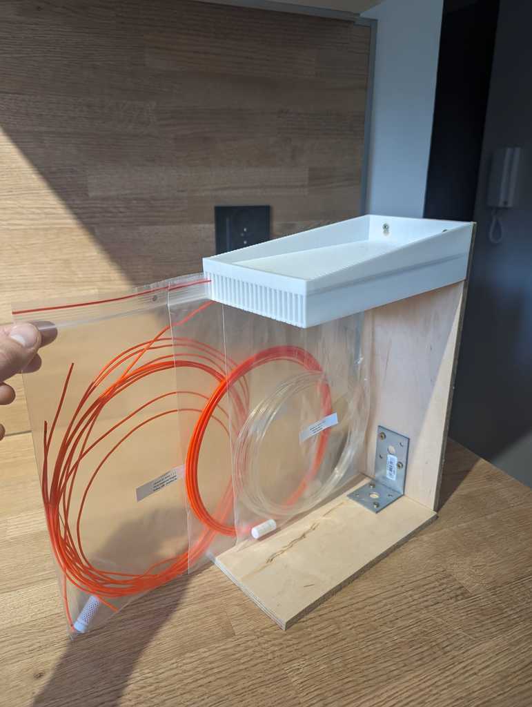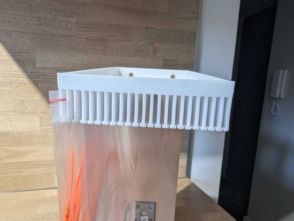 Kệ đựng 22 túi zip loại 20cm (miệng) x 25cm. Tui làm cái này để phân loại các mẫu filament nhỏ. Remix từ mẫu https://www.thingiverse.com/thing:6113294