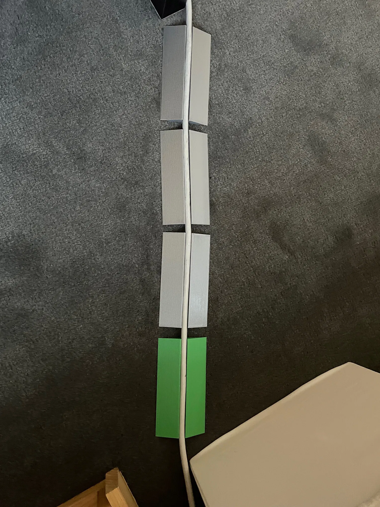 Chắn dây điện này giúp dây điện trên sàn nhà đỡ vướng víu và an toàn hơn, đồng thời giúp robot hút bụi Roomba di chuyển qua dễ dàng mà không bị vướng hay giật dây. Có thể tùy chỉnh kích thước và vật liệu in.