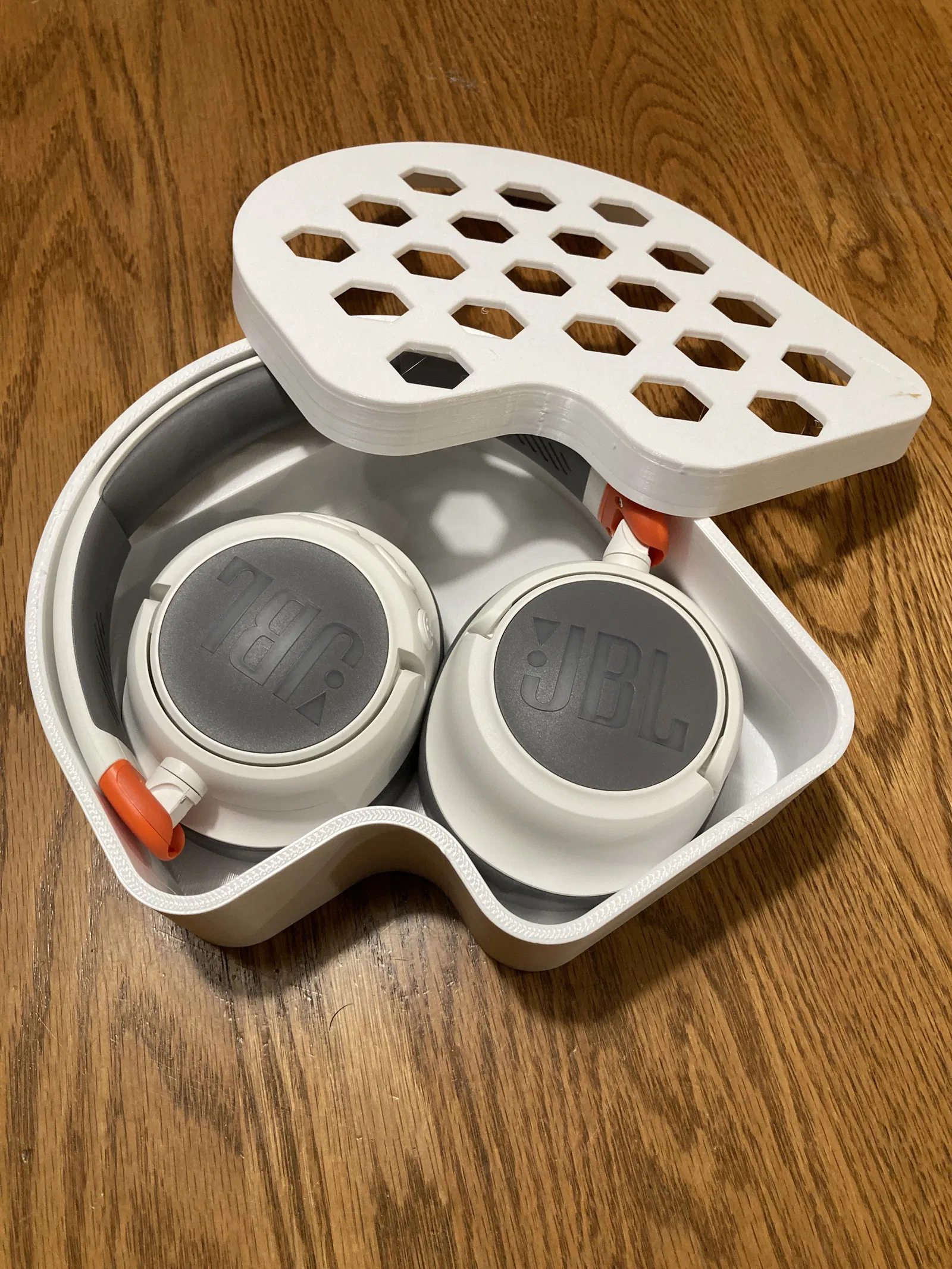 Hộp đựng và nắp cho tai nghe JBL 460JR. Vì tai nghe của con trai tôi không có hộp đựng, tôi đã tự làm một cái hộp đơn giản với thiết kế nắp đậy vừa vặn, in ra dùng rất tốt.