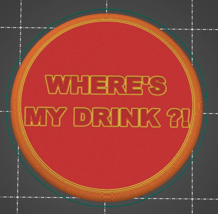 In theo yêu cầu của bạn, mẫu lót ly này có in dòng chữ "where's my drink" (Ly của tôi đâu rồi?). Mẫu này rất phù hợp để bạn bè trêu chọc nhau hoặc làm quà tặng vui nhộn. Tải về ngay để in 3D nhé!