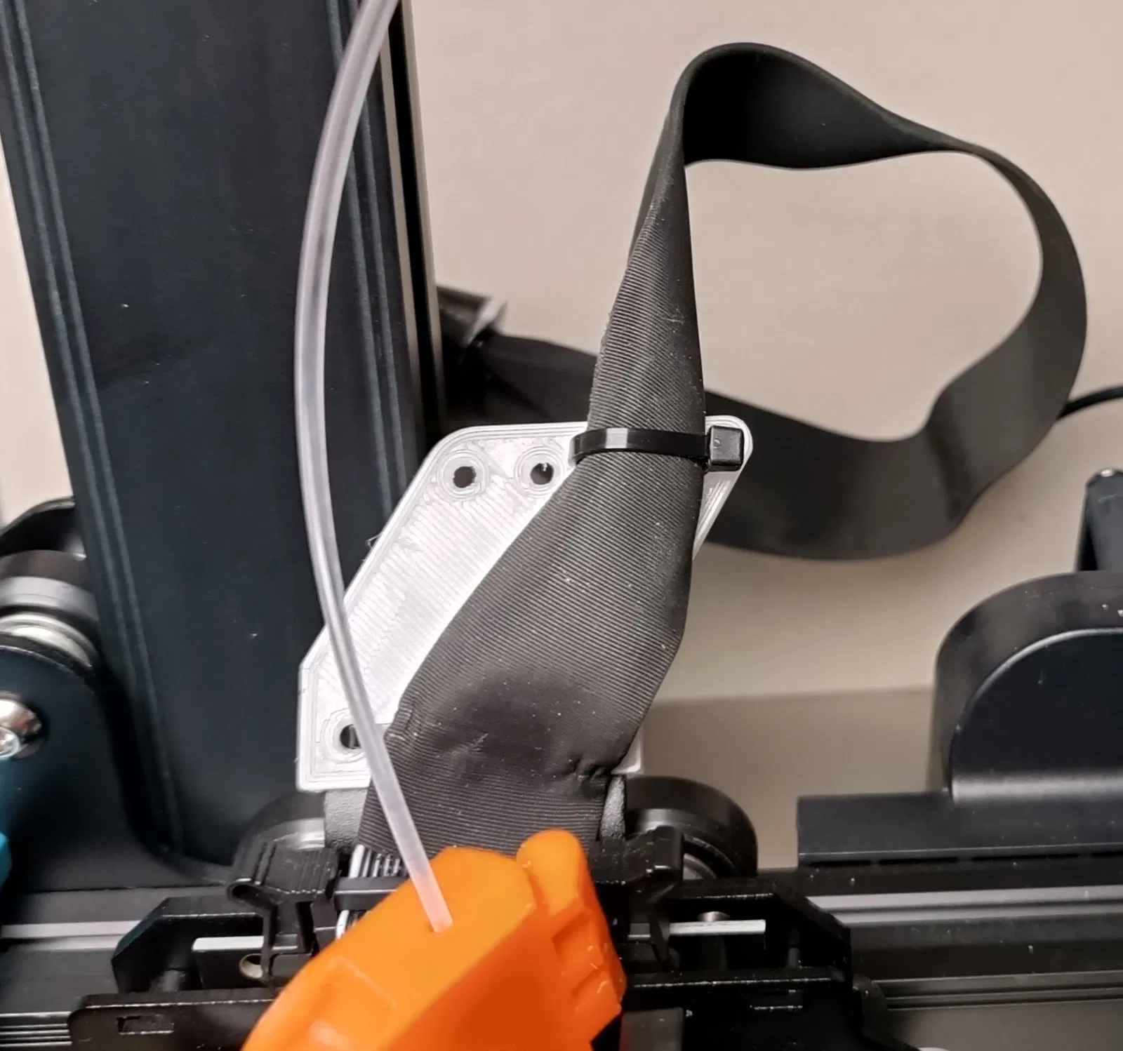 Do dây cáp đầu in va chạm với trục Z khi homing, làm mòn vỏ dây, tui đã tạo ra giá đỡ này để giữ dây cáp. Có hai phiên bản 30mm và 15mm, tui chọn phiên bản 15mm, chỉ cần 2 dây rút nhựa 100mm để gắn.