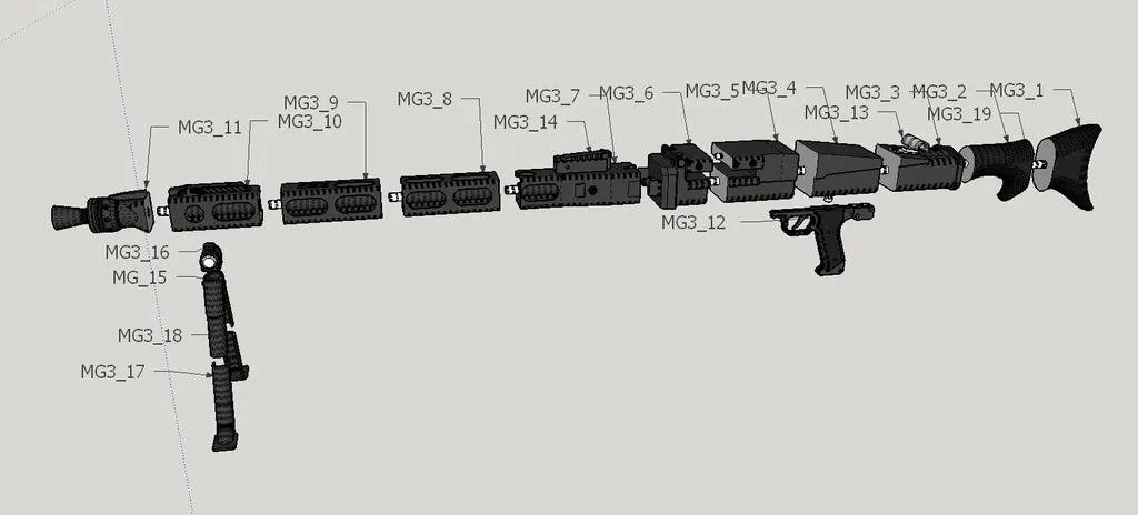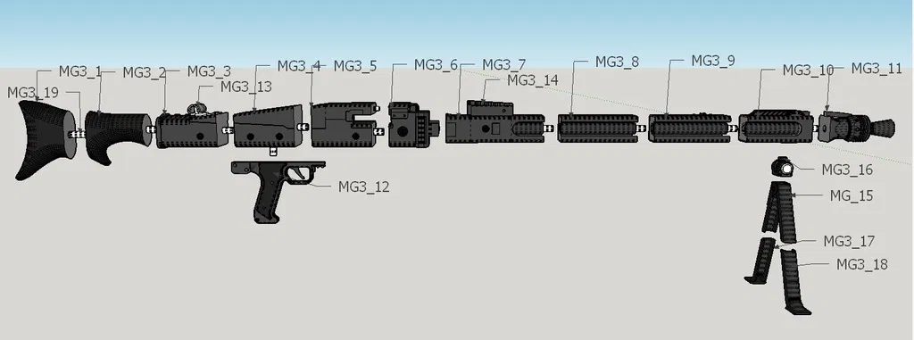 Anh em ơi, có ông bạn muốn làm mô hình MG3 quân Đức tỉ lệ 1:1 để cosplay nè! Tôi đã tìm và chỉnh sửa mô hình từ Sketchup cho dễ in, có hướng dẫn lắp ráp chi tiết. Lưu ý là mô hình này chỉ để trưng bày thôi nha, không có chức năng gì đâu. Cập nhật sửa lỗi file STL rồi đó, anh em yên tâm tải về nhé!