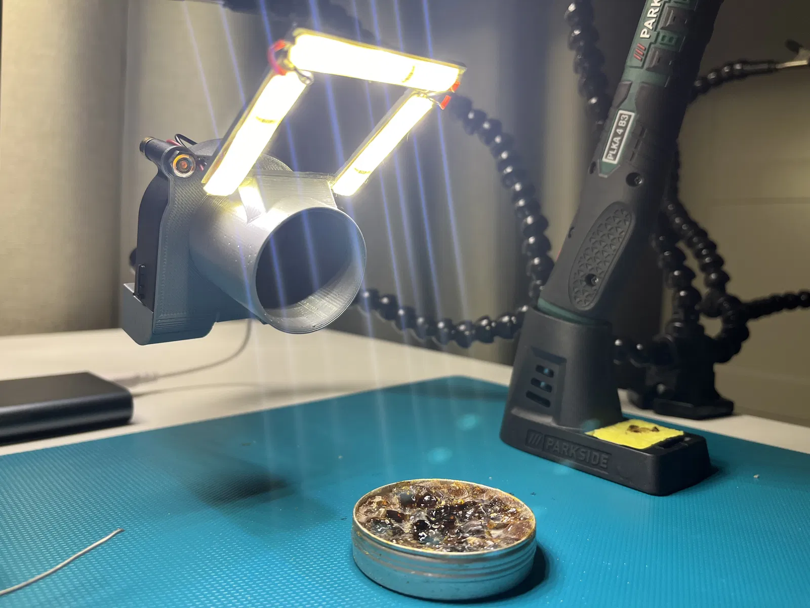 Máy hút khói hàn độc hại kiêm đèn chiếu sáng tiện lợi trong một. Giúp bạn quan sát rõ quá trình hàn, bảo vệ sức khỏe khỏi khói độc hại.