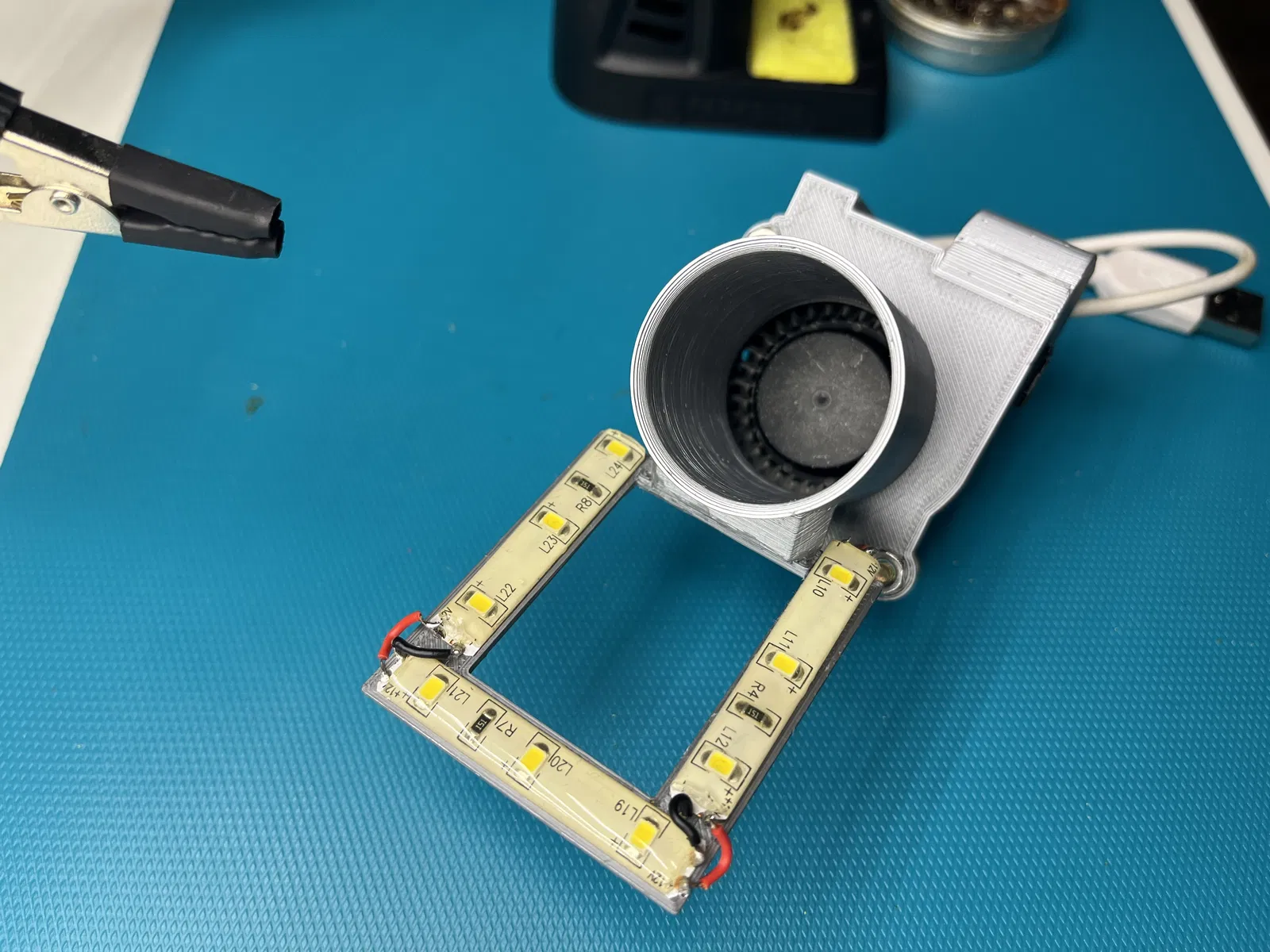 Dải đèn LED được đấu song song với quạt.