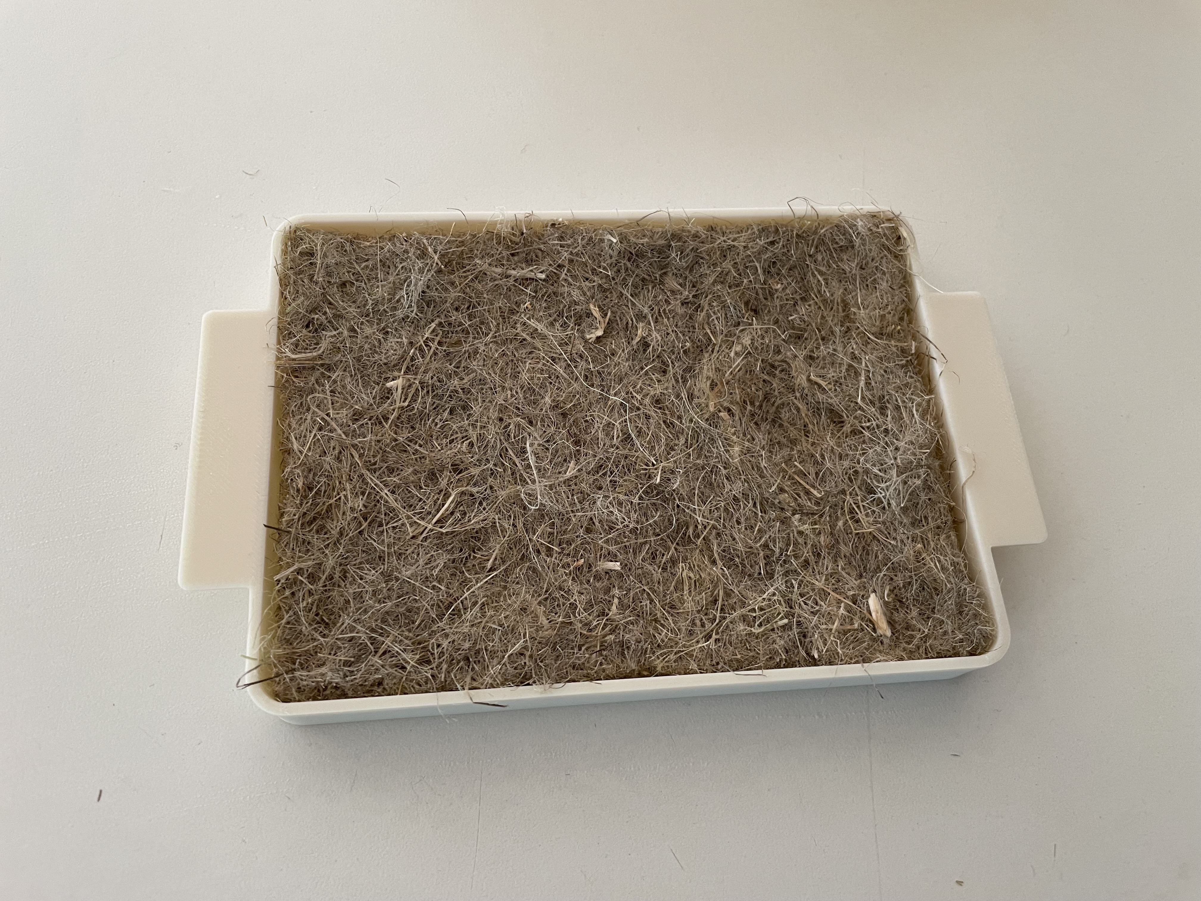Khay ươm rau mầm siêu nhỏ, có thể dùng vải nỉ gai dầu làm lớp lót. Phần trên và dưới làm từ PLA, phần bên trong làm từ ASA. Dùng giá đỡ cho đáy và phần bên trong.