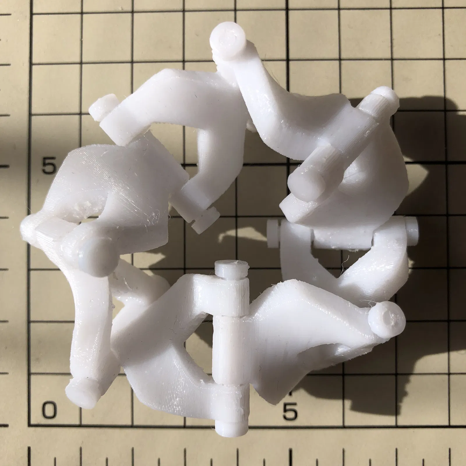 Nếu khe hở quanh bản lề quá nhỏ sẽ cản trở chuyển động xoay, nhưng nếu quá lớn sẽ khiến vòng bị biến dạng vì không giữ được hình dạng tròn; MK9 bị biến dạng khá nhiều, nhưng đây có thể là tác dụng phụ của việc làm cho mô hình nhỏ hơn. Tôi đã tạo mô hình với khoảng cách thông thường giữa các bản lề, nhưng nếu tăng số lượng đơn vị cơ bản, khoảng cách giữa các bản lề nên được rút ngắn lại, điều này có thể là nguyên nhân gây ra sự biến dạng.