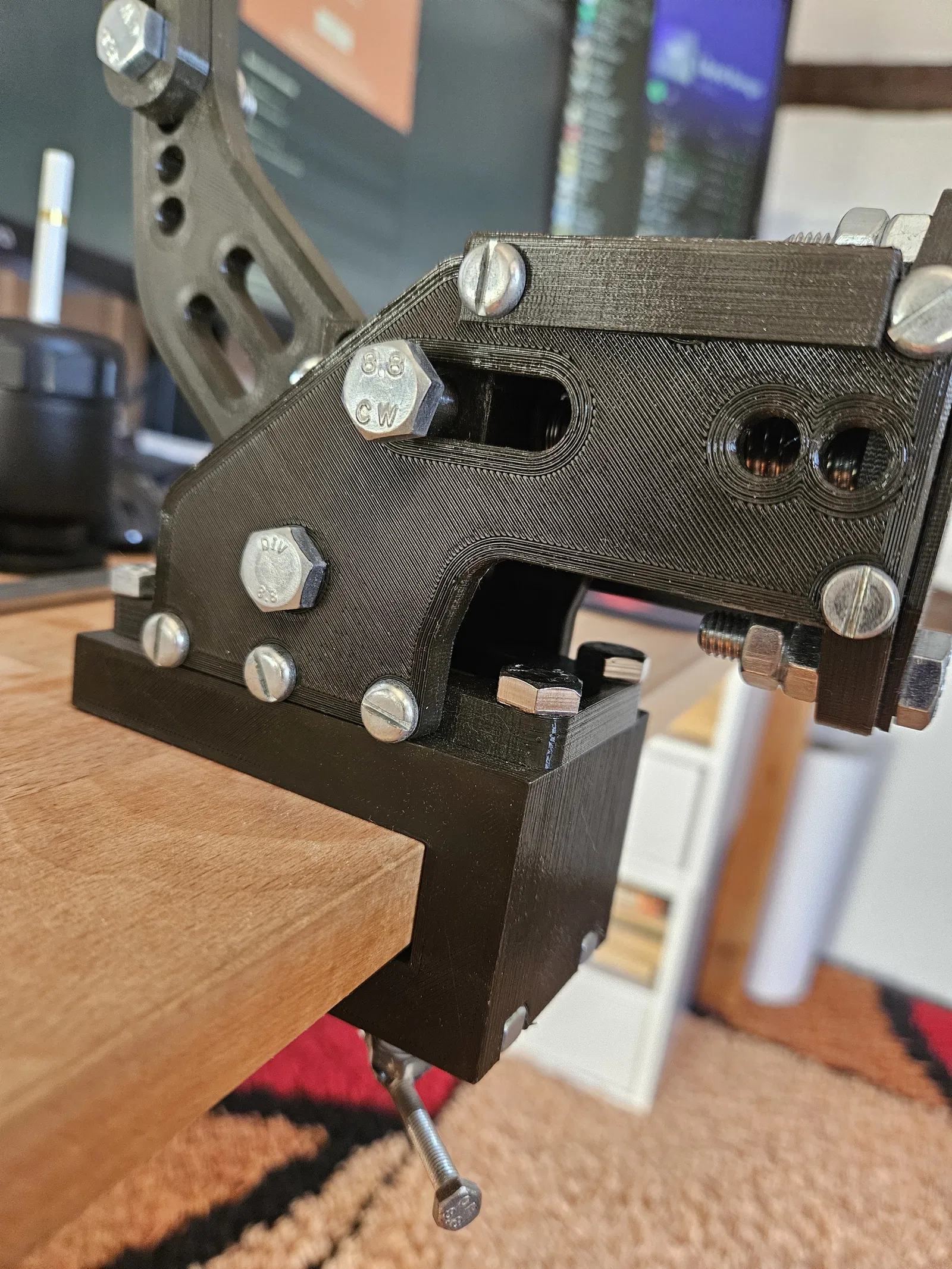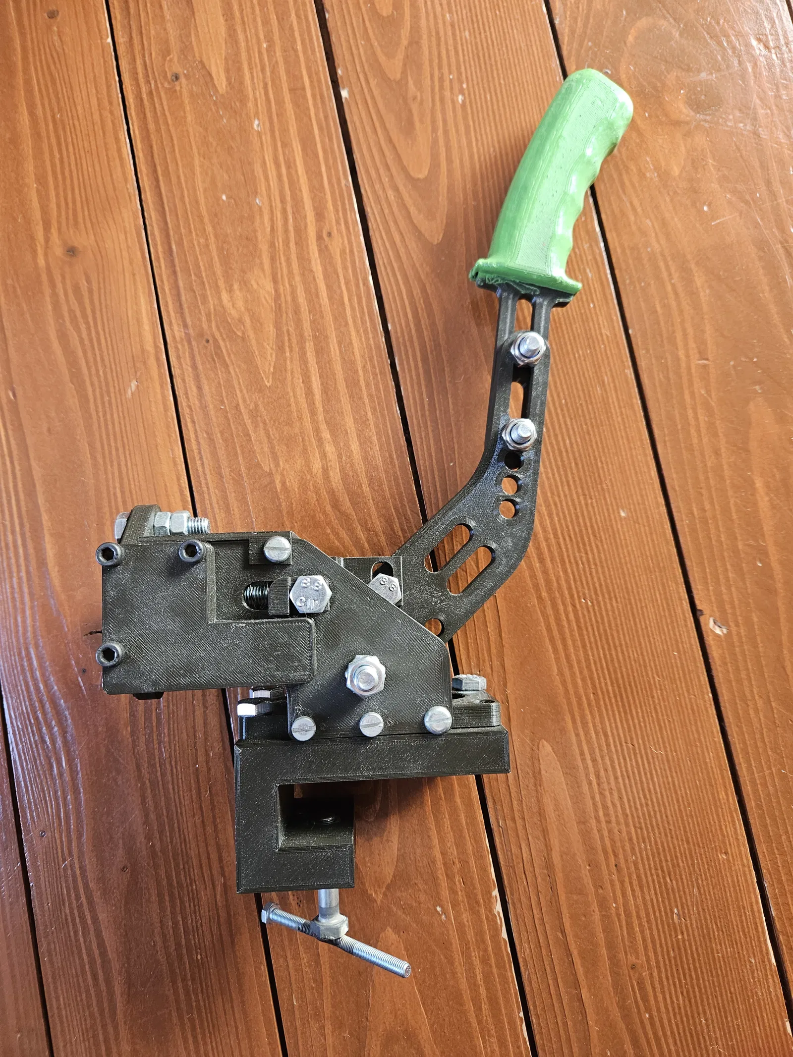 Bộ gá bàn đa năng này dùng để gắn phanh tay lên mặt bàn, phù hợp với đa số các loại bàn. Lắp ráp đơn giản, chỉ cần vặn và cố định bằng vít. Có thể in không cần supports. Cần chuẩn bị các loại vít và đai ốc M8 đi kèm.