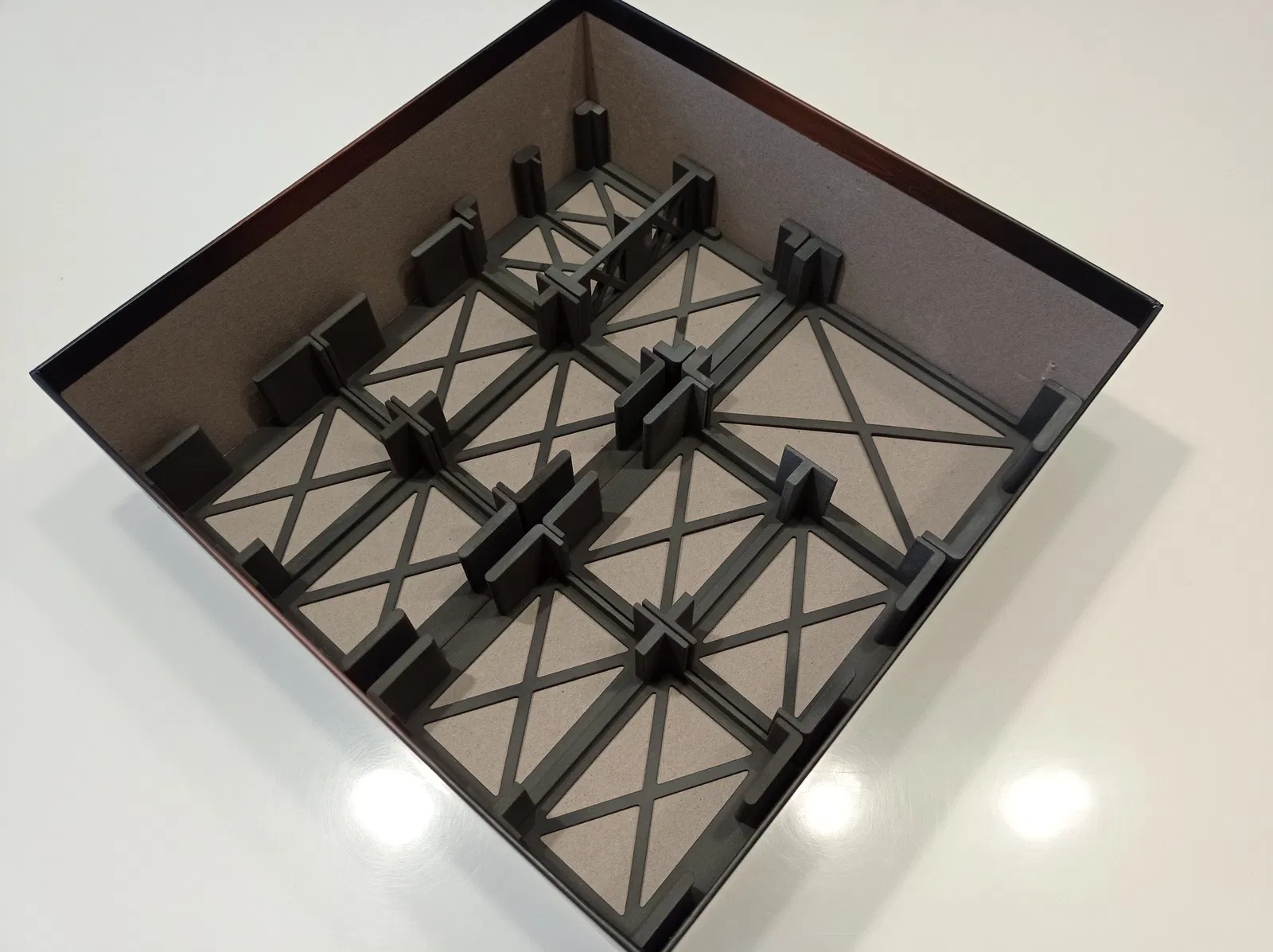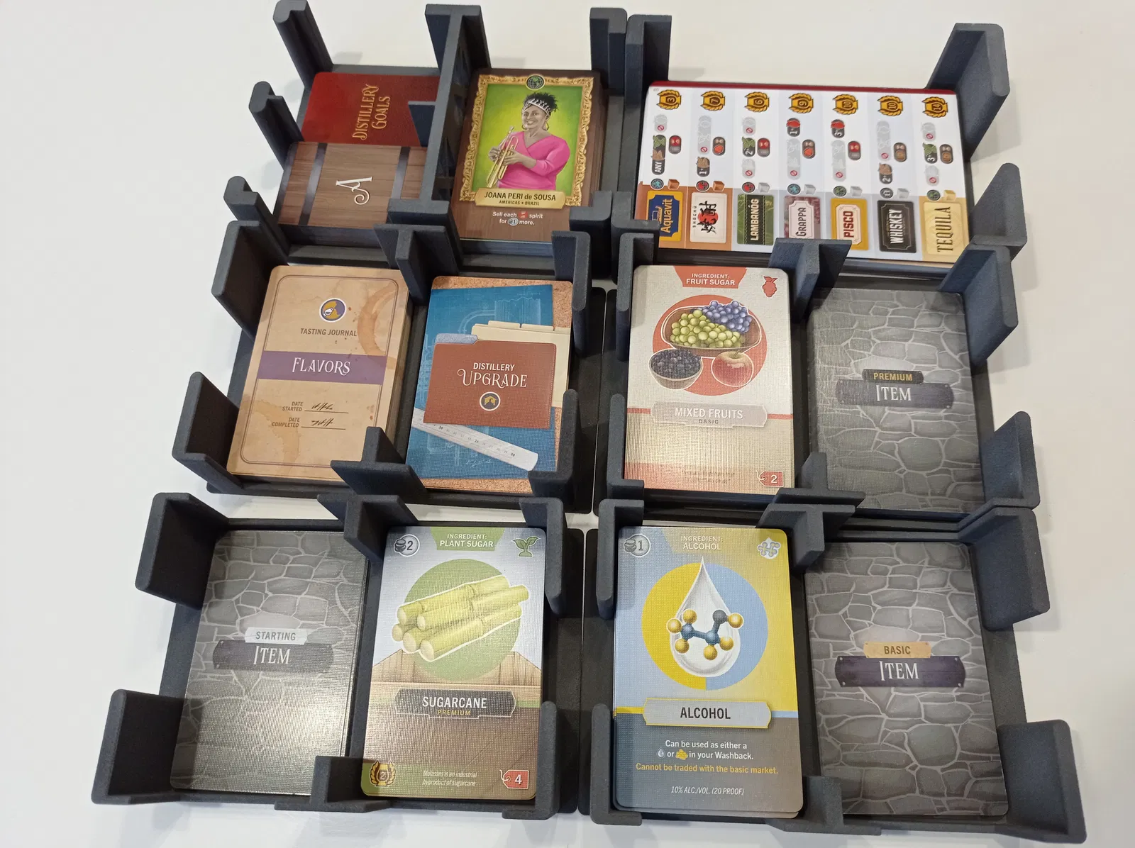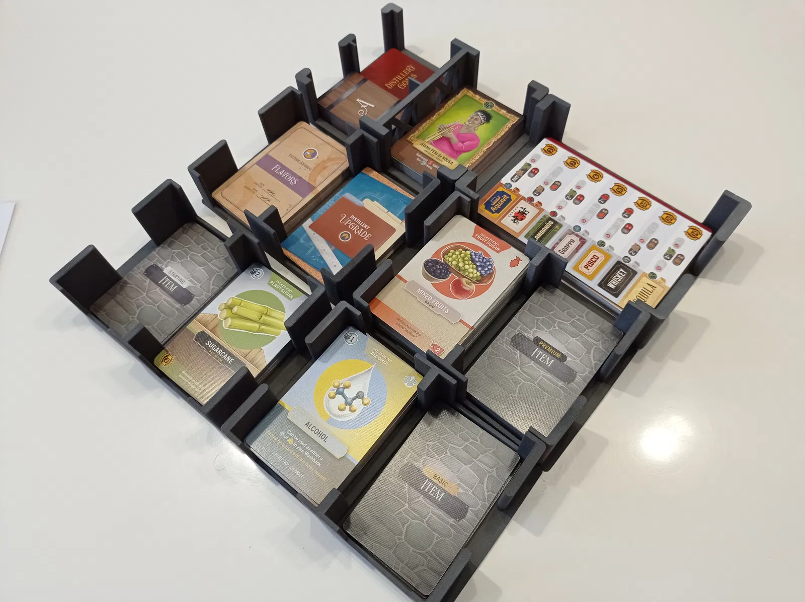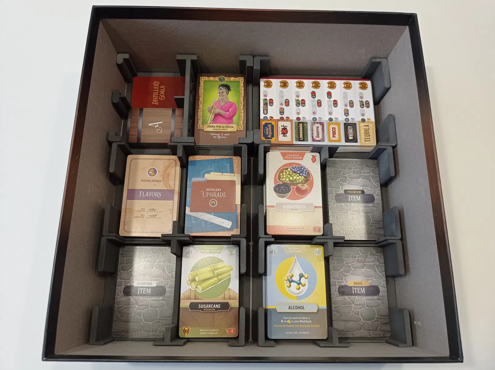 Khay đế lót cho tất cả các lá bài trong Distilled, tiết kiệm chi phí & trọng lượng nhờ giảm một nửa lượng vật liệu sử dụng.