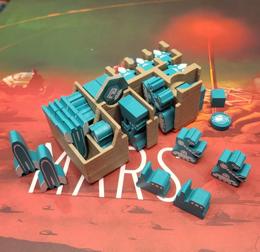 Đây là một khay đựng tất cả các token của người chơi cho trò chơi cờ bàn On Mars. Mỗi người chơi có khá nhiều token để sắp xếp vào đầu trò chơi (Colonists, Advanced Building markers, Bots, v.v.), và khay này giúp tối giản hóa quá trình thiết lập. Khay cũng có một khe cắm cho ô Tech shelter của người chơi. Khay vừa với khoang chứa token của người chơi, là một phần của khay tổ chức bằng nhựa đi kèm với trò chơi.