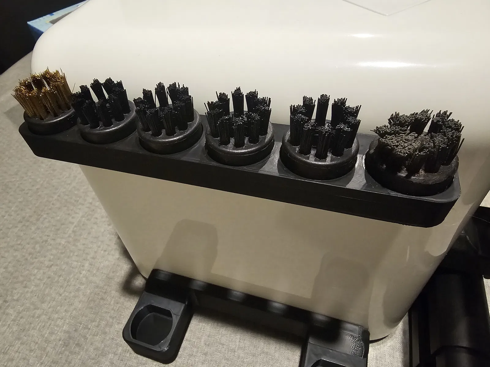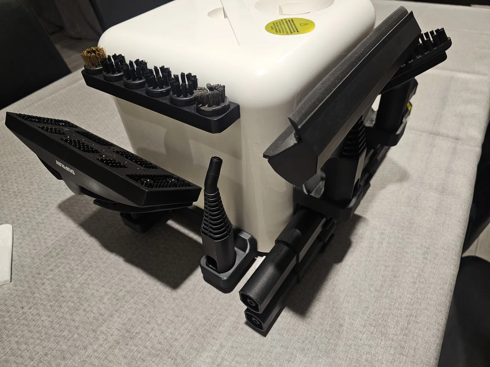 Bao gồm chỗ cắm cho mọi phụ kiện đi kèm máy hơi nước của tôi. 6 bàn chải, đầu phun, dụng cụ cạo sàn, cây lau nhà, v.v.