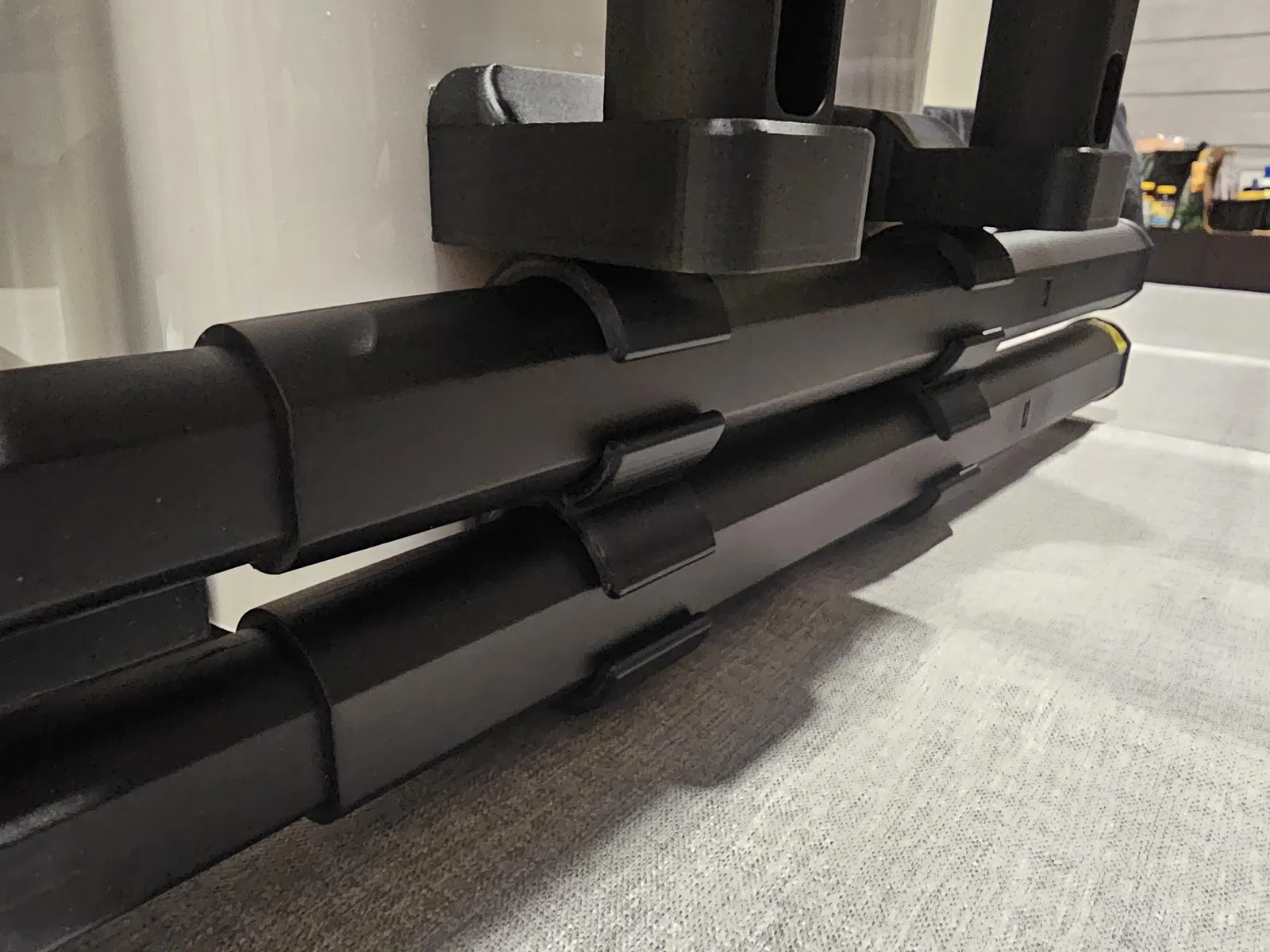 In 2 cái đế cắm ống dẫn và gắn cách nhau ra để giữ chắc hơn.
