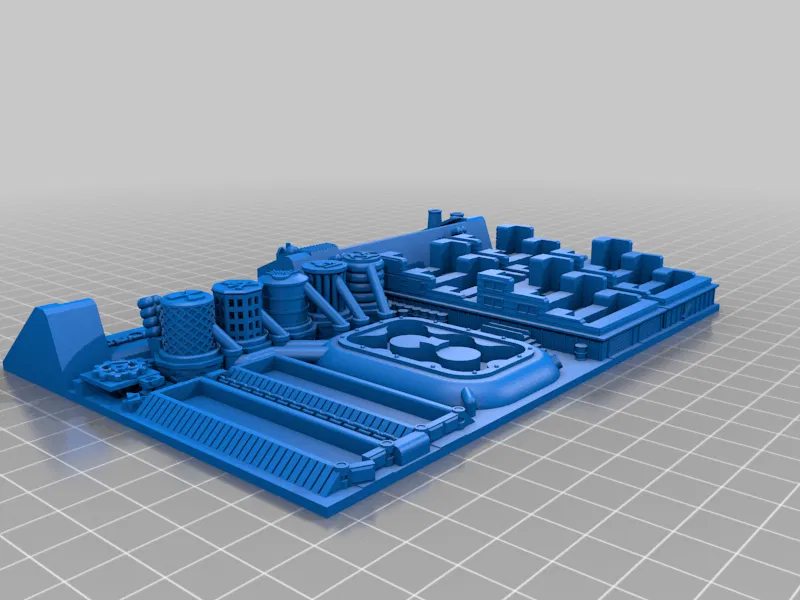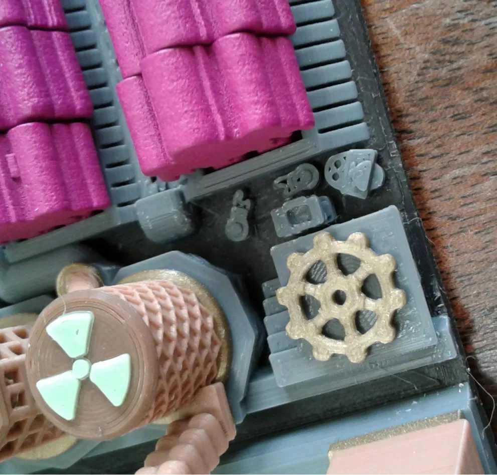 Tấm lót chính được thiết kế có tính đến chiều cao lớp in để tạo sự nhất quán về mặt nghệ thuật, và được in bằng cách thay đổi năm loại filament. Phần mái sau riêng biệt được in bằng một lần thay đổi filament.