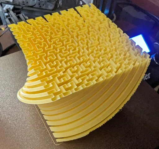 Mô hình Đường cong Hilbert xoắn ốc, với độ dày thành chỉ 1 lớp, tạo nên sự linh hoạt nhưng cũng rất mong manh. Sự kết hợp độc đáo giữa xoắn ốc và cấu trúc Hilbert mang lại trải nghiệm thú vị khi cầm nắm.