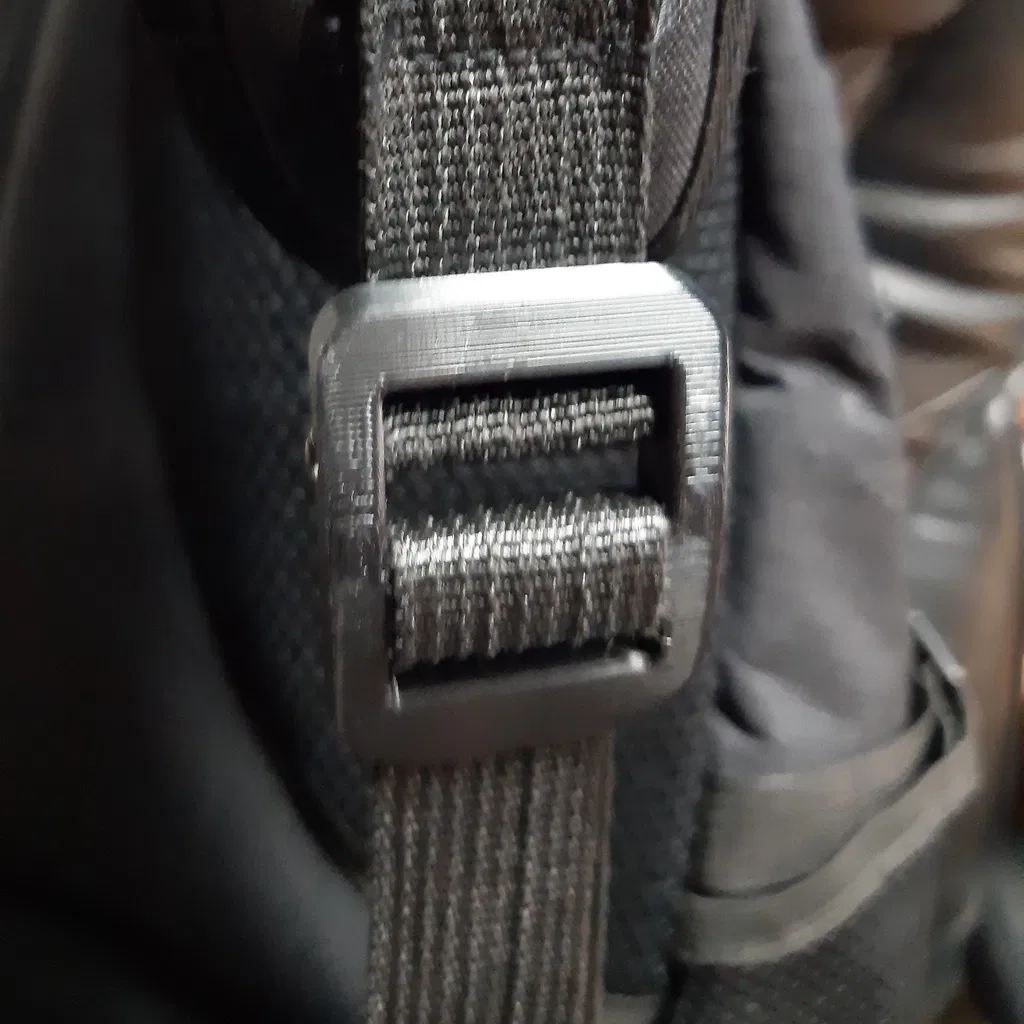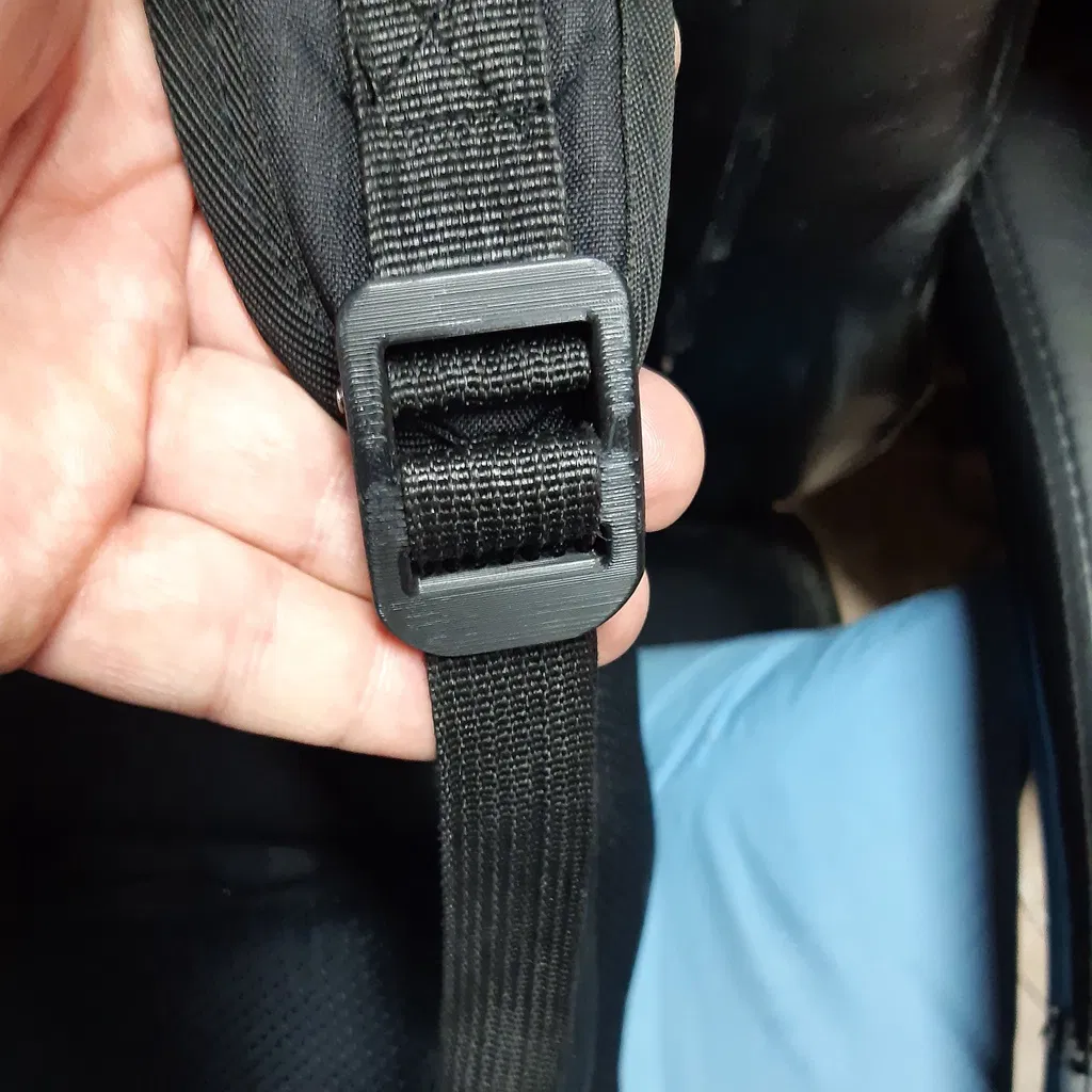 Cái điều chỉnh dây đeo này làm ra để hư và đúng là nó đã hư. Nếu không có máy in 3D, cái túi này chắc đã bị vứt vào sọt rác. Chỉ với 25 phút thiết kế và 1 tiếng 20 phút in là có ngay bộ điều chỉnh dây đeo mới.