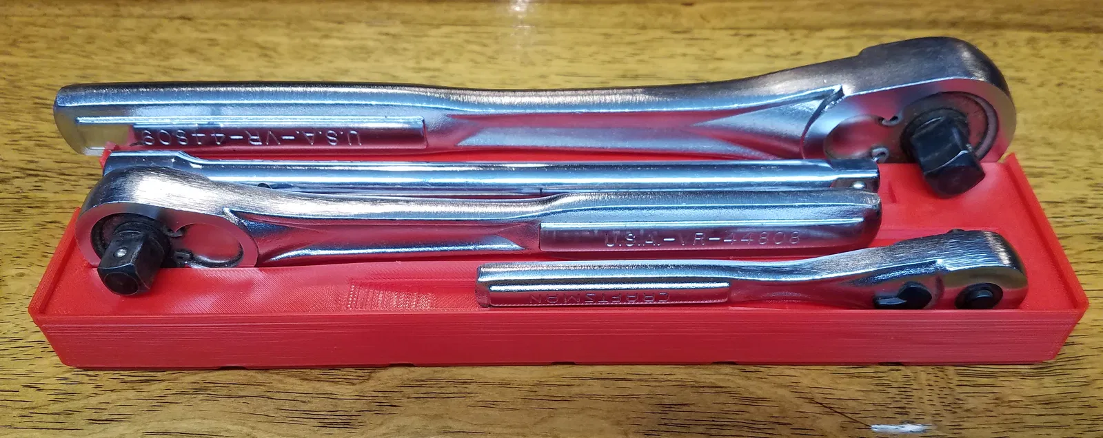 Hệ thống dựa trên Gridfinity để sắp xếp ngăn kéo rương đồ nghề có kích thước 478mmx260mmx75mm (Rộng x Sâu x Cao). Các dụng cụ hiệu Craftsman có trong ảnh. Bao gồm cả file Step.