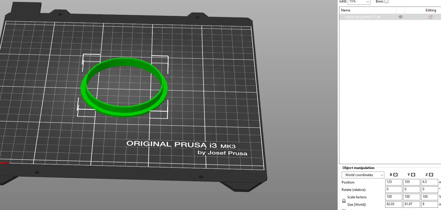 Những miếng đệm này được thiết kế cho các lọ có đường kính trong là 73 mm (0.96"). Đường kính ngoài của miếng đệm này là 82mm. Tôi đã in miếng đệm từ TPU.