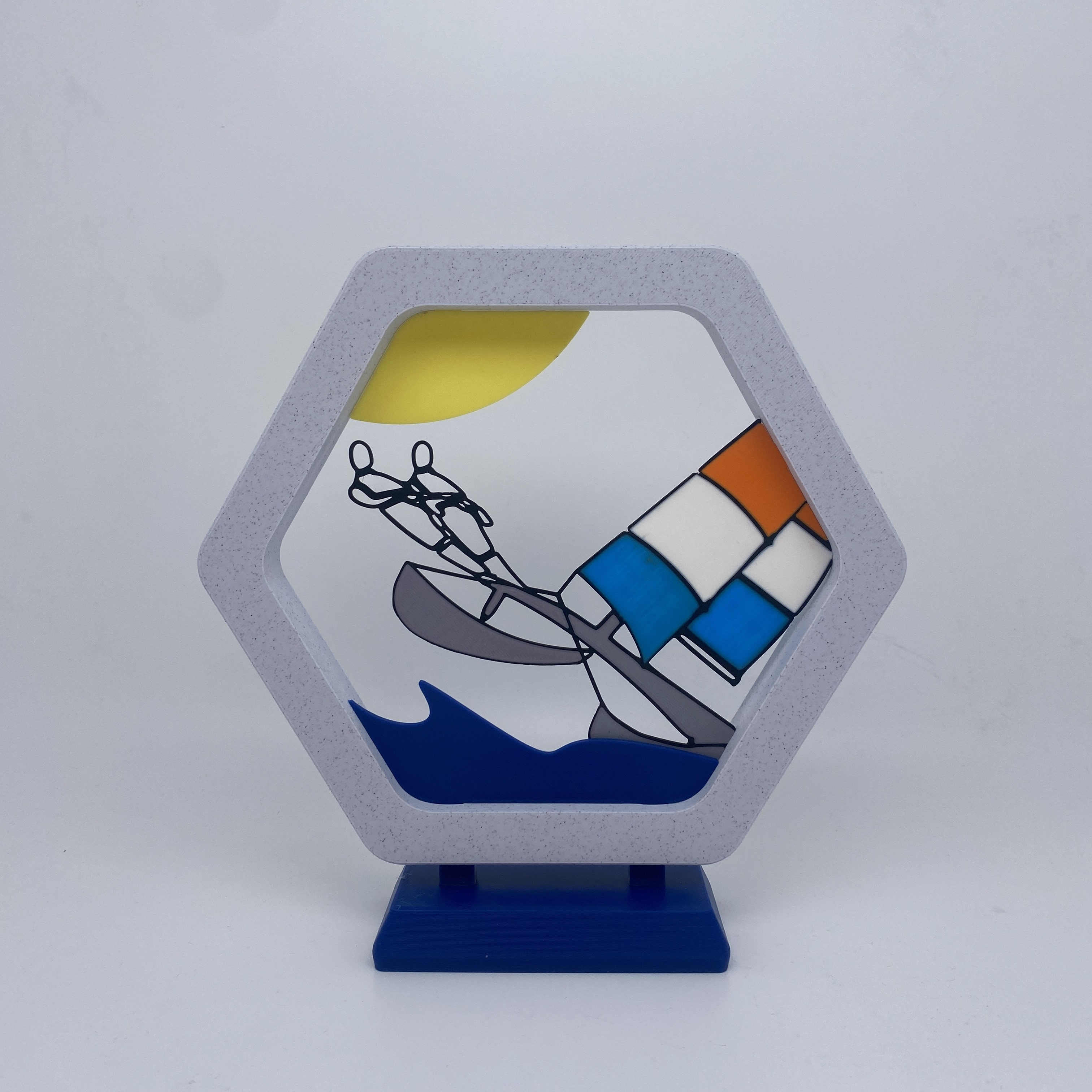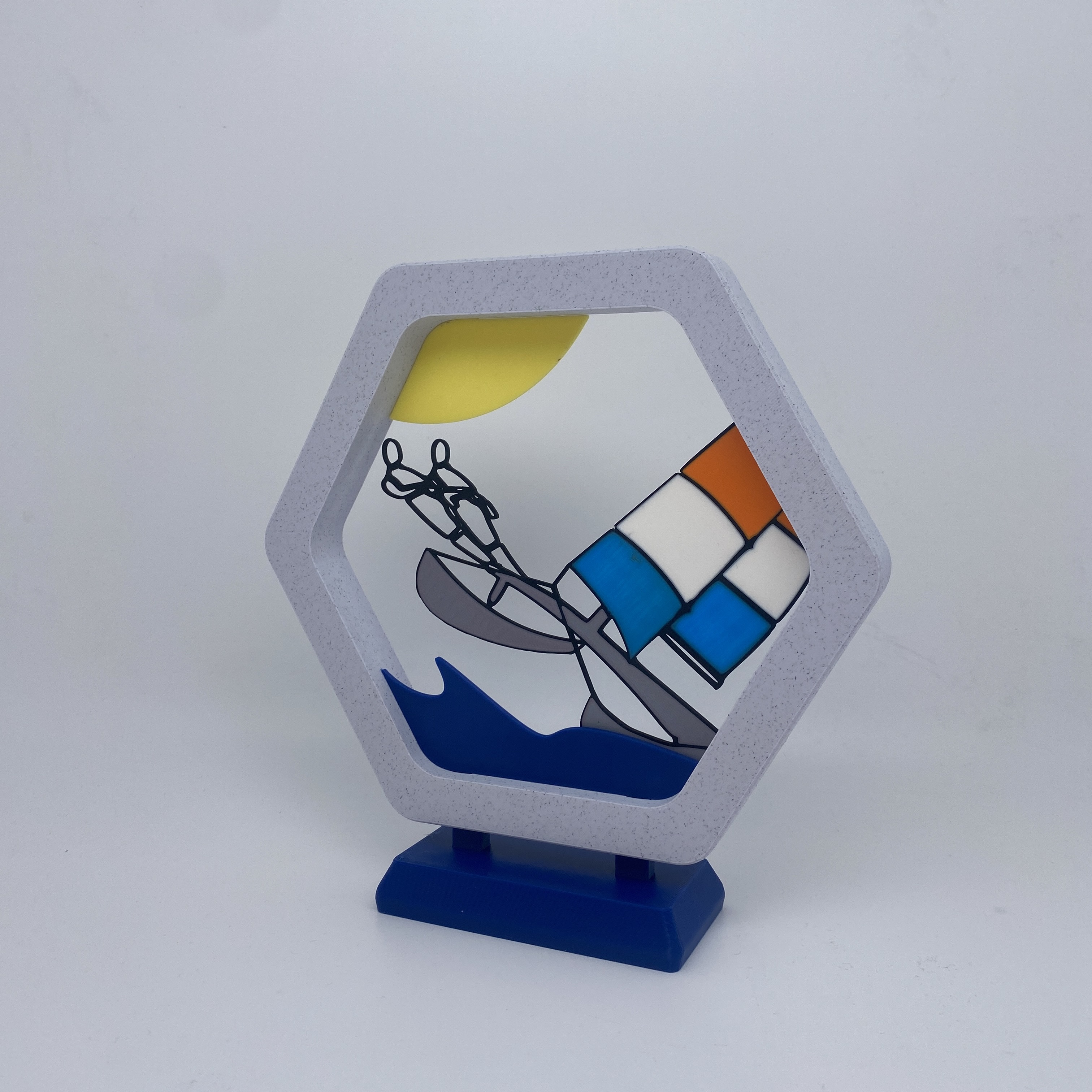 Trang trí tường hay để bàn siêu xinh với khung thuyền catamaran lục giác. Có đế sẵn, không cần support, in PLA/STL dễ dàng. Thích hợp cho mọi không gian.