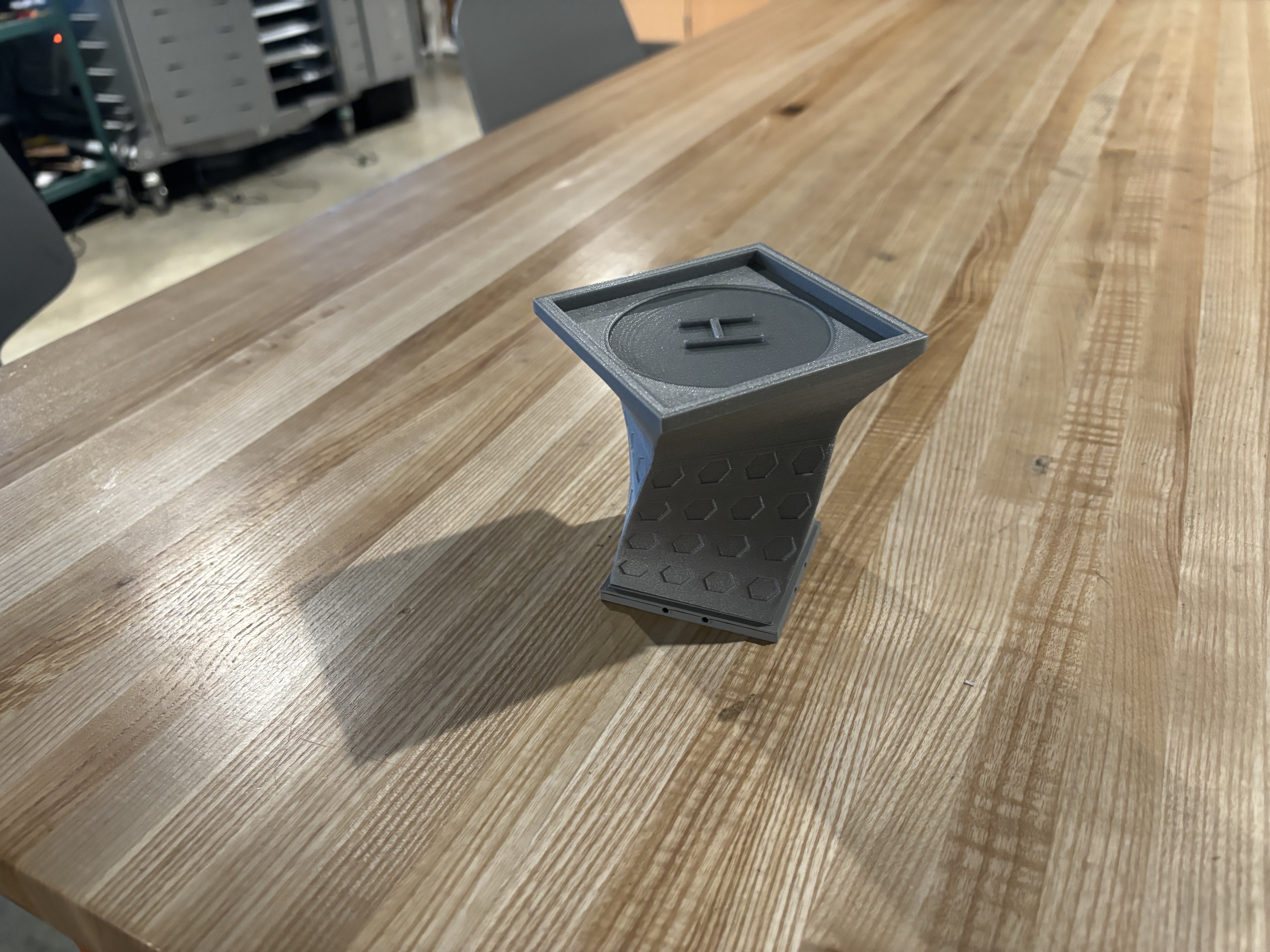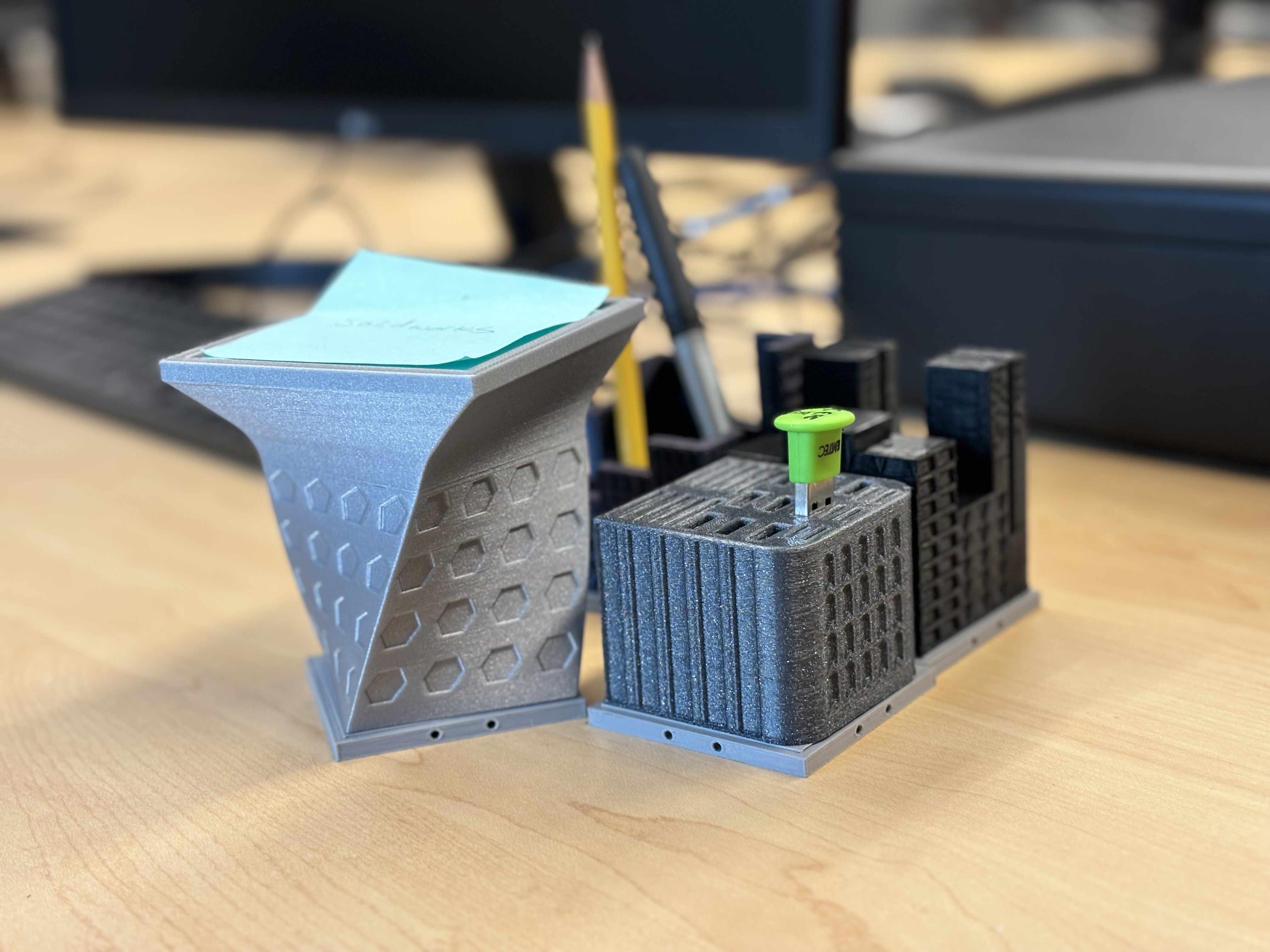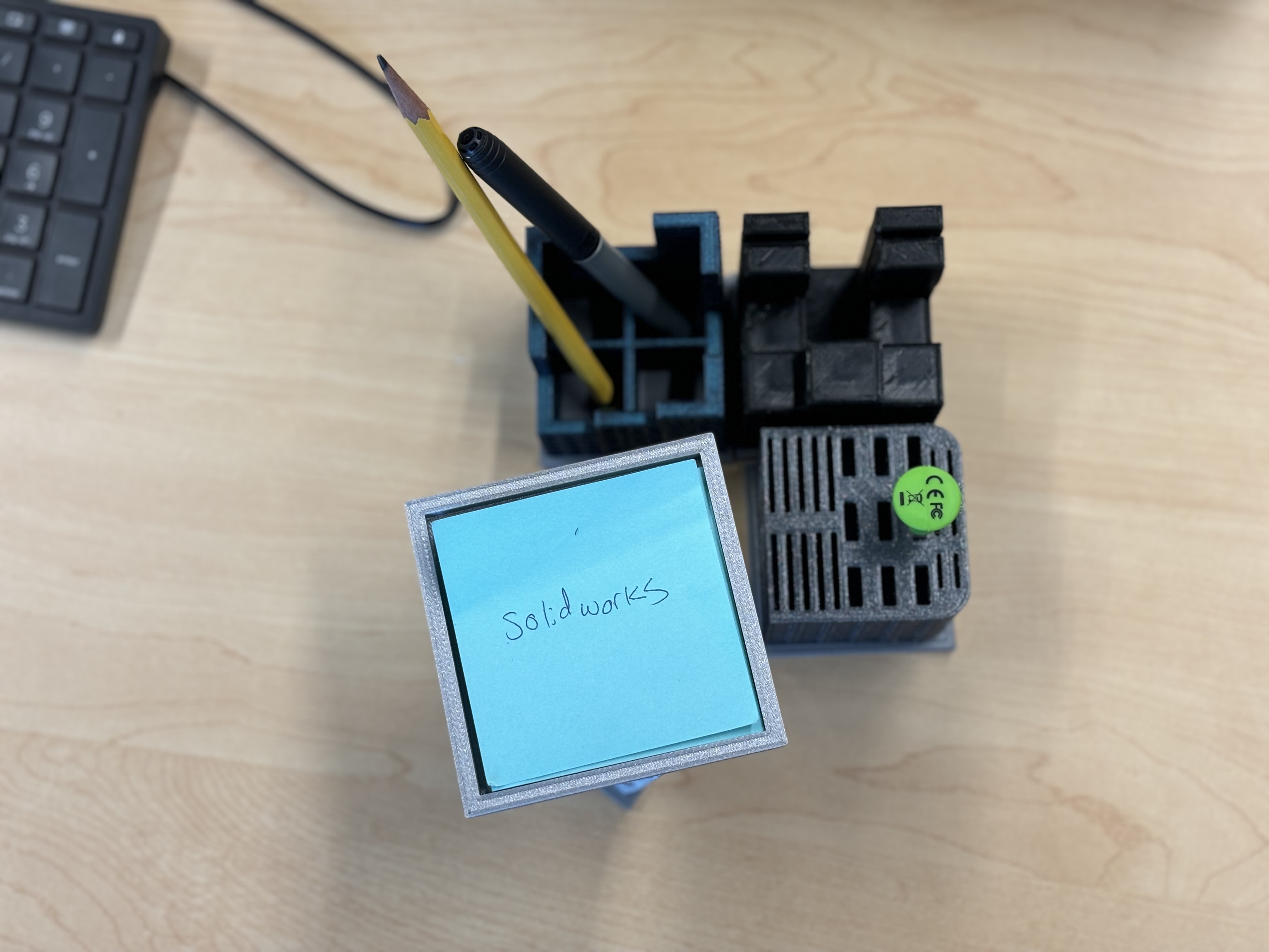 Phần Tóm tắt: Dùng cái tòa nhà thành phố độc đáo này để làm cho bàn làm việc của bạn thêm sinh động nha! Cái sân bay trực thăng sáng tạo rộng 9x9cm là chỗ lý tưởng để giữ giấy ghi chú, chai nước, và bất cứ thứ gì bạn muốn! Tôi hoàn thành dự án này cùng với bạn đời của tôi là Shawn, bạn có thể tìm thấy trang Printables của cậu ấy ở đây, và nó là một phần của bộ văn phòng phẩm chủ đề thành phố. Cái tòa nhà, cùng với cái đế, chắc chắn sẽ làm bừng sáng bất kỳ bàn làm việc nào! Kế hoạch bài học và Hoạt động: Phân tích gần đây của bộ phận tài chính Staples đã kết luận rằng doanh số bán các sản phẩm tổ chức để bàn đã giảm trong những năm gần đây. Công ty muốn tăng lợi nhuận trong lĩnh vực này bằng cách nâng cao tính thẩm mỹ của các sản phẩm này. Nhóm hai người của bạn đã được thuê để thiết kế một bộ sản phẩm tổ chức theo chủ đề. Nhóm của bạn sẽ thiết kế một bộ văn phòng phẩm được kết nối với nhau bằng một chủ đề chung. Bạn phải có khả năng biện minh cho chủ đề kết nối các sản phẩm. Ý tưởng là khách hàng sẽ không chỉ muốn mua một món, mà sẽ muốn mua cả bộ. Hướng dẫn lắp ráp/Thi công (nếu cần): Nếu bạn muốn kết nối tòa nhà này với các tòa nhà khác trong bộ này, bạn sẽ cần cả đế và tòa nhà. 1. Căn chỉnh các cạnh của đế với các cạnh dưới của tòa nhà bằng con đường nhỏ tiếp giáp với chu vi của đế. 2. Cẩn thận dán hai mảnh lại với nhau. Đảm bảo tòa nhà được căn chỉnh với đế, nếu không nó có thể không kết nối với các tòa nhà khác. Chúc mừng! Giờ bạn có thể kết nối cái giá đựng giấy ghi chú này với các văn phòng phẩm chủ đề thành phố khác trong bộ này. Tôi cũng đã đính kèm hướng dẫn từng bước về cách tạo mô hình này trong Solidworks. Lựa chọn thiết kế: 1. Sân bay trực thăng