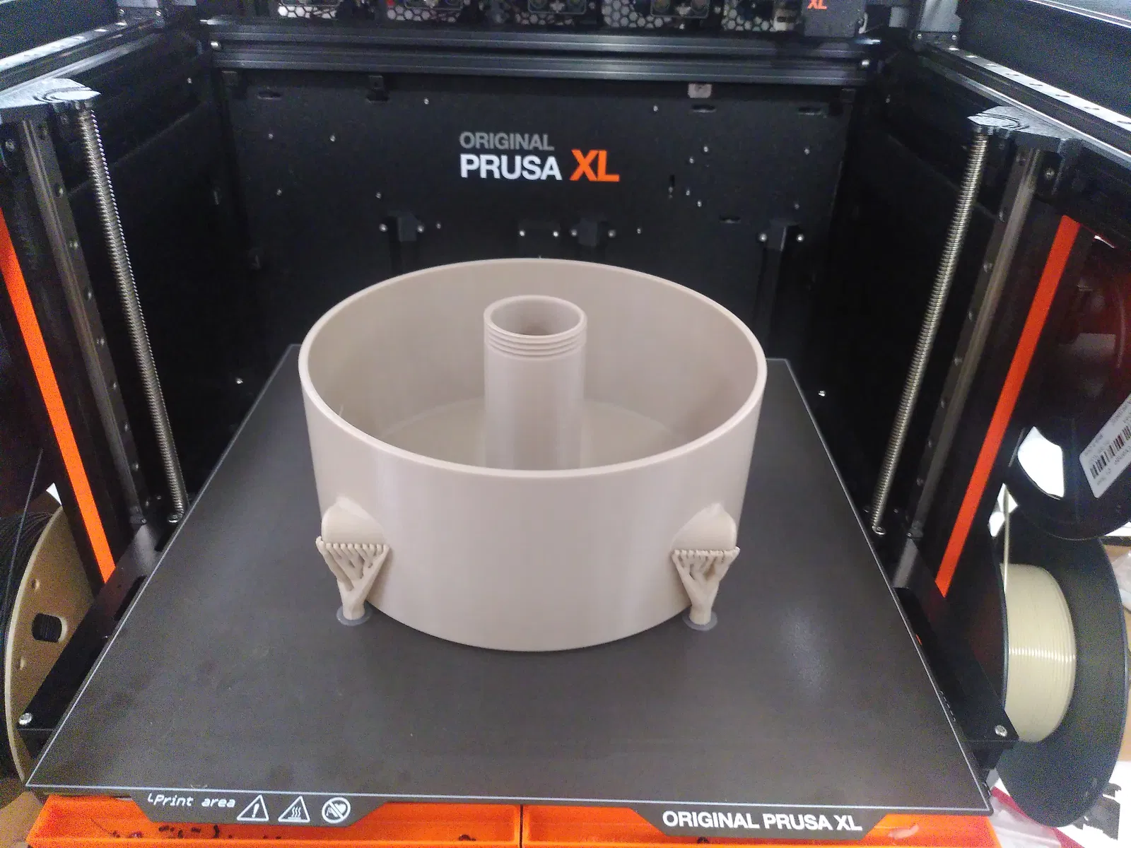 Không chắc việc sử dụng sợi nhựa trong suốt có cho phép nhìn vào bên trong không, mặc dù tôi không chắc điều đó quan trọng đến mức nào, vì các ống dẫn của máy đùn cho phép nhìn thấy màu sắc của sợi. Có lẽ một khe cắm đuôi cá để chèn thẻ ghi màu/loại sợi tùy chọn có thể được bổ sung sau.