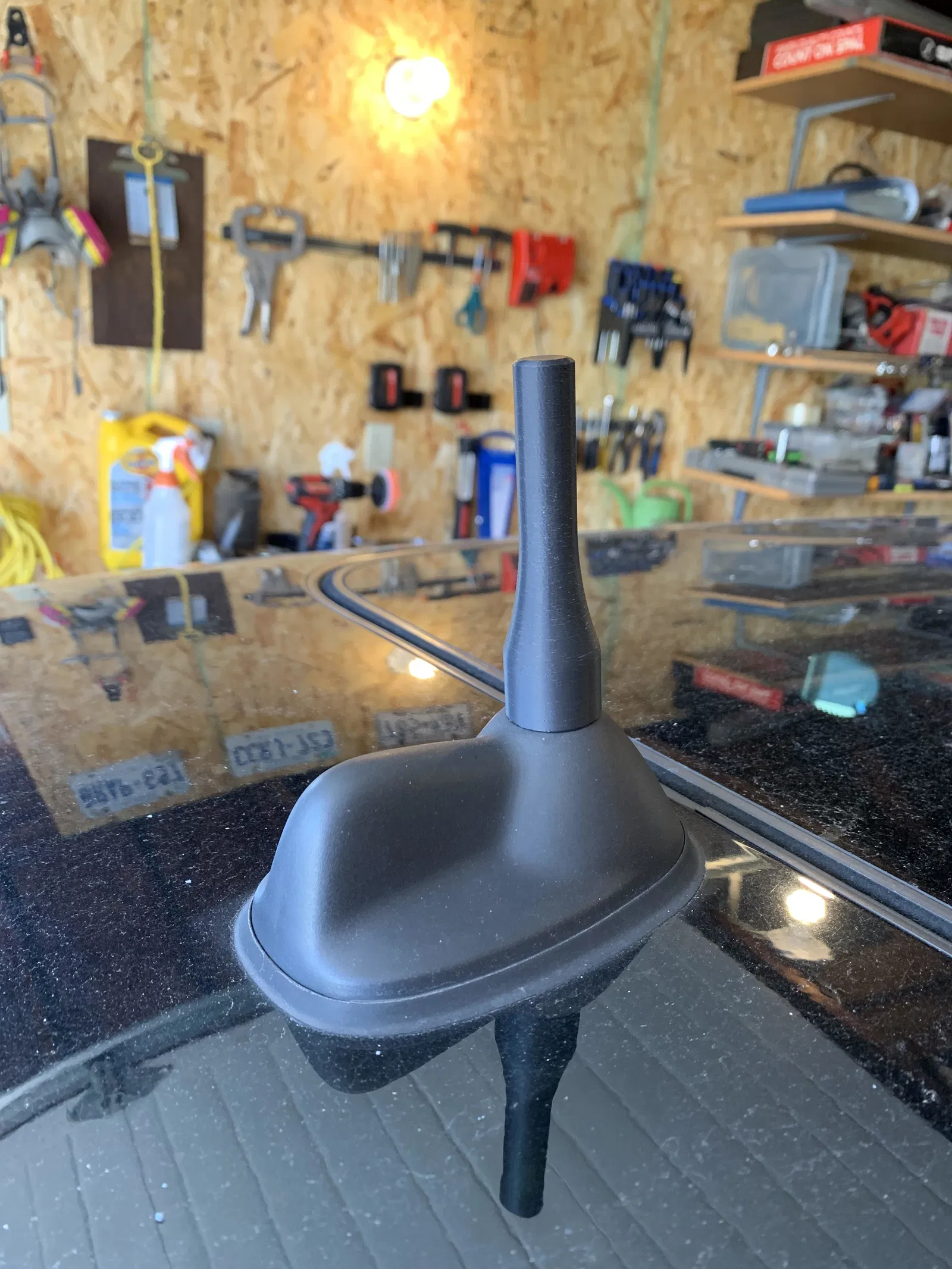 Cái ăng-ten in 3D này dùng để gắn vừa vặn lên phần "xương" ăng-ten còn sót lại trên hầu hết các xe R56 Mini Cooper. Được in bằng nhựa ASA để chịu được thời tiết và tia UV, đảm bảo độ bền. Phần bên trong ăng-ten được thiết kế để trượt và giữ chặt bằng ma sát với phần kim loại.