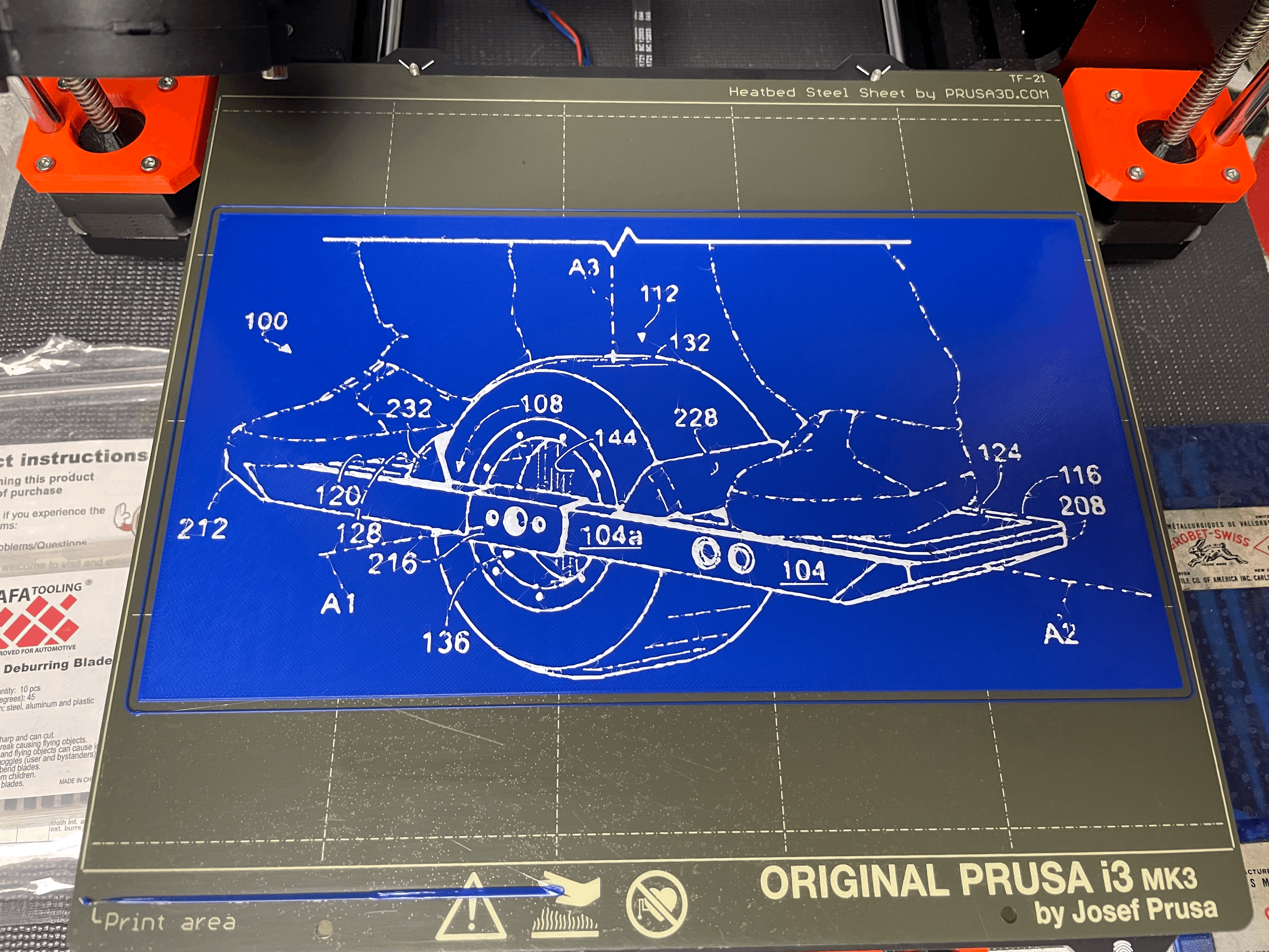 Đây là bản in kiểu bản vẽ kỹ thuật dựa trên hình ảnh từ bằng sáng chế FM OW năm 2016. Mô hình này được thiết kế để in hai màu, với các lớp có độ dày khác nhau cho phần đế và phần nghệ thuật, sử dụng độ cao lớp 0.2mm.