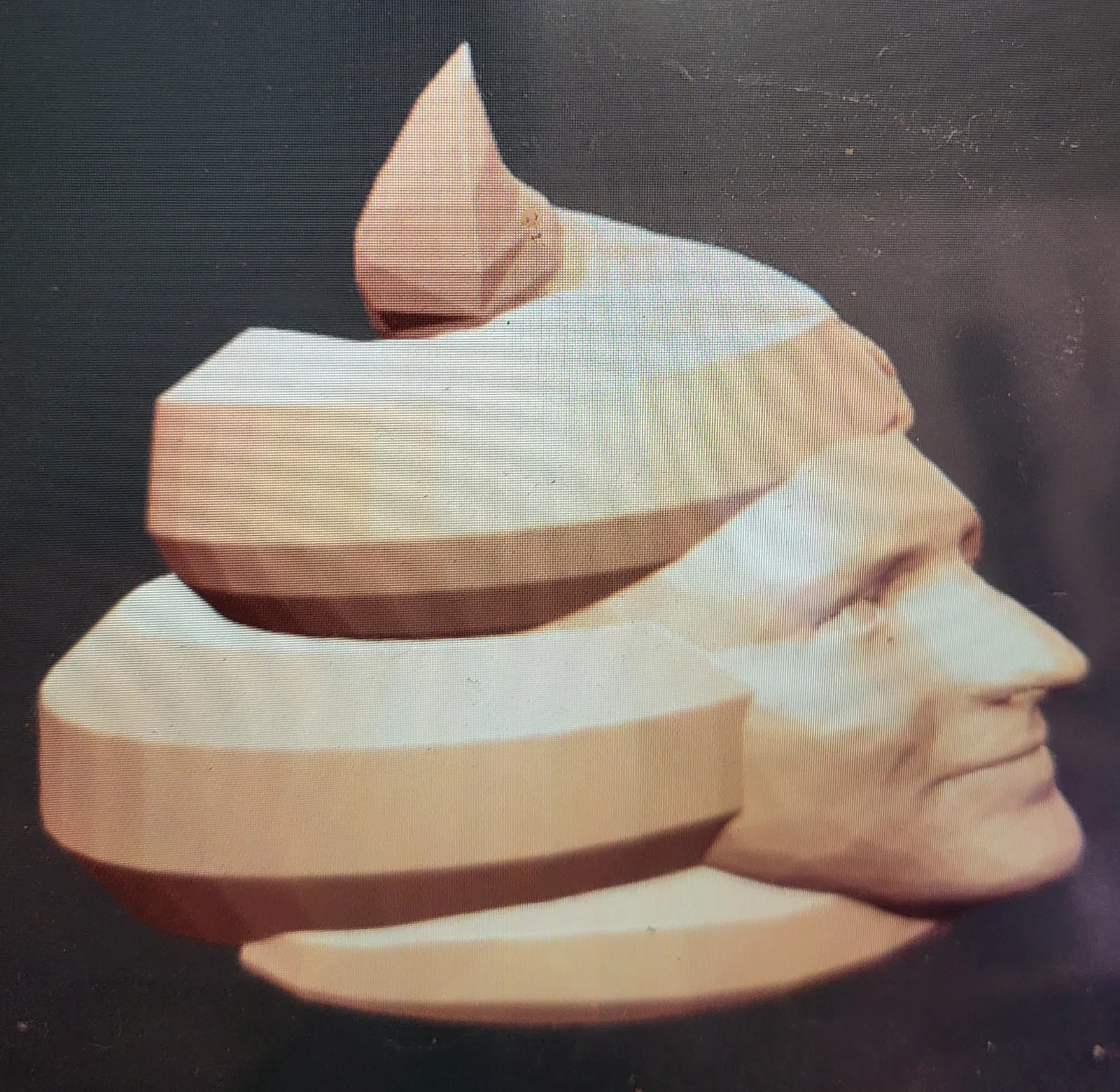 Mặt Justin Trudeau trên đống phân. Mô hình này được tạo bằng Tinkercad và render bằng SculptGL, sử dụng vật liệu PLA tiêu chuẩn. File STL sẵn sàng để tải về.