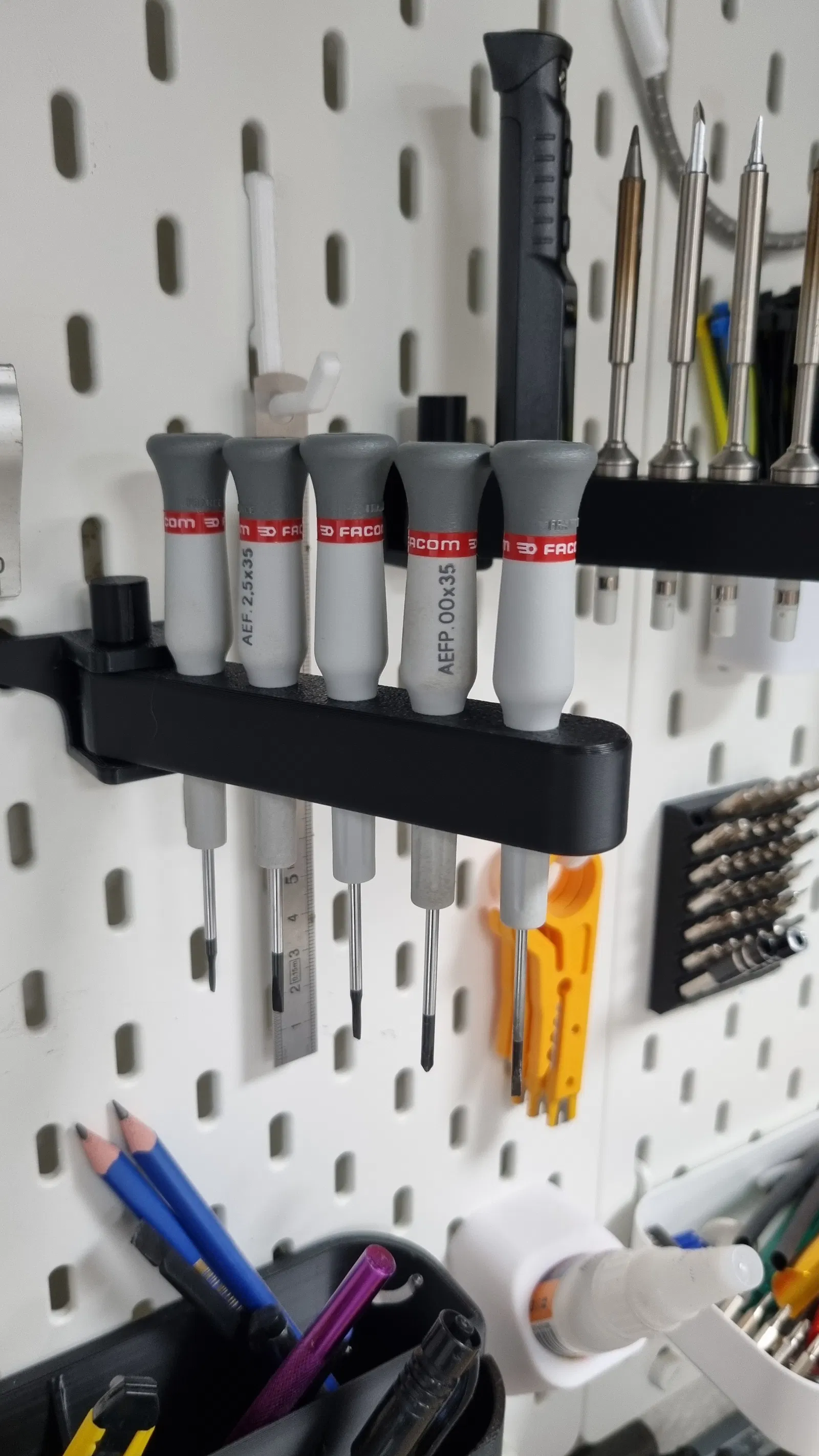 Đây là một giá đỡ di động Skadis dành cho tua vít chính xác Facom. Đối với các giá đỡ và tệp F3D khác, vui lòng tham khảo ấn phẩm này: https://www.f3d.vn/3d-model/129174-skadis-de-di-dong-da-nang