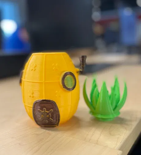 Mô tả Dùng trái thơm này từ loạt phim hoạt hình SpongeBob nổi tiếng để đựng tất cả đồ dùng văn phòng bạn muốn, như kẹp giấy, kẹp tài liệu và dây chun! Đây là một phần của bộ bốn món đồ dùng văn phòng theo chủ đề SpongeBob, và mặc dù trang này tập trung cụ thể vào trái thơm, các tệp in còn lại đã được tải lên. Các món đồ khác là hộp đựng bút chì SpongeBob, hộp đựng điện thoại/Airpods Boatmobile và hộp đựng tẩy Krusty Krab. Bản in này gồm hai phần, thân và nắp, và là một cách tuyệt vời để thêm cá tính cho bàn làm việc của bạn! Tôi đã tạo bộ đồ dùng văn phòng này cùng với Rishit, và bạn có thể tìm thấy hồ sơ của anh ấy tại đây. #### Gợi ý thiết kế Phân tích gần đây của bộ phận tài chính Staples đã kết luận rằng doanh số bán các sản phẩm tổ chức bàn làm việc đã giảm trong những năm gần đây. Công ty muốn tăng lợi nhuận của họ trong lĩnh vực này bằng cách nâng cao tính thẩm mỹ của các sản phẩm này. Nhóm hai người của bạn đã được thuê để thiết kế một bộ sản phẩm tổ chức theo chủ đề. Nhóm của bạn sẽ thiết kế một bộ đồ dùng văn phòng được kết nối với nhau bởi một chủ đề chung. Bạn phải có khả năng biện minh cho chủ đề kết nối các sản phẩm với nhau. Ý tưởng là khách hàng sẽ không muốn mua chỉ một món; họ sẽ muốn mua cả bộ. #### Hướng dẫn lắp ráp Trước khi lắp ráp, hãy đảm bảo bạn có tất cả các bộ phận cần thiết. * 1x Thân trái thơm (Cladekar_Pineapple_Body)