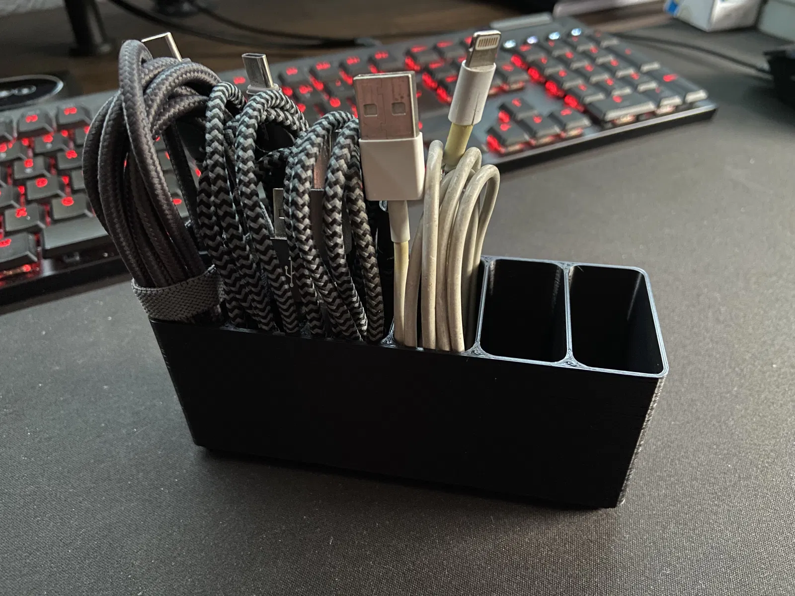 Dọn dẹp mớ cáp USB lộn xộn trong ngăn kéo của bạn với bộ quản lý cáp Gridfinity! Giải pháp in 3D nhỏ gọn, dễ dàng, giúp không gian lưu trữ của bạn gọn gàng hơn.