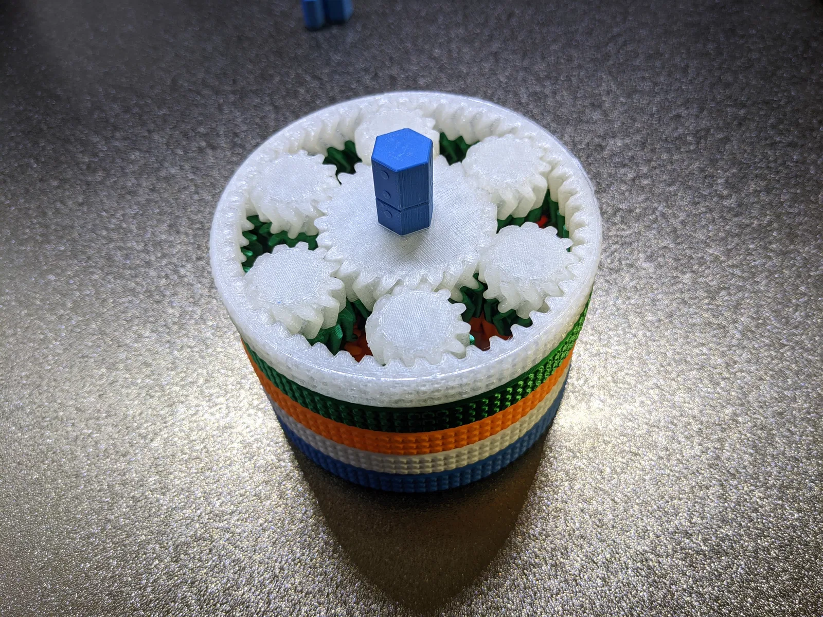 Bộ bánh răng hành tinh in 1 lần (print-in-place) có thể xếp chồng và liên kết với nhau theo nhiều cách. Tùy chỉnh cách kết nối và khám phá vô vàn khả năng sáng tạo. Kết quả in có thể thay đổi tùy theo máy in của bạn.
