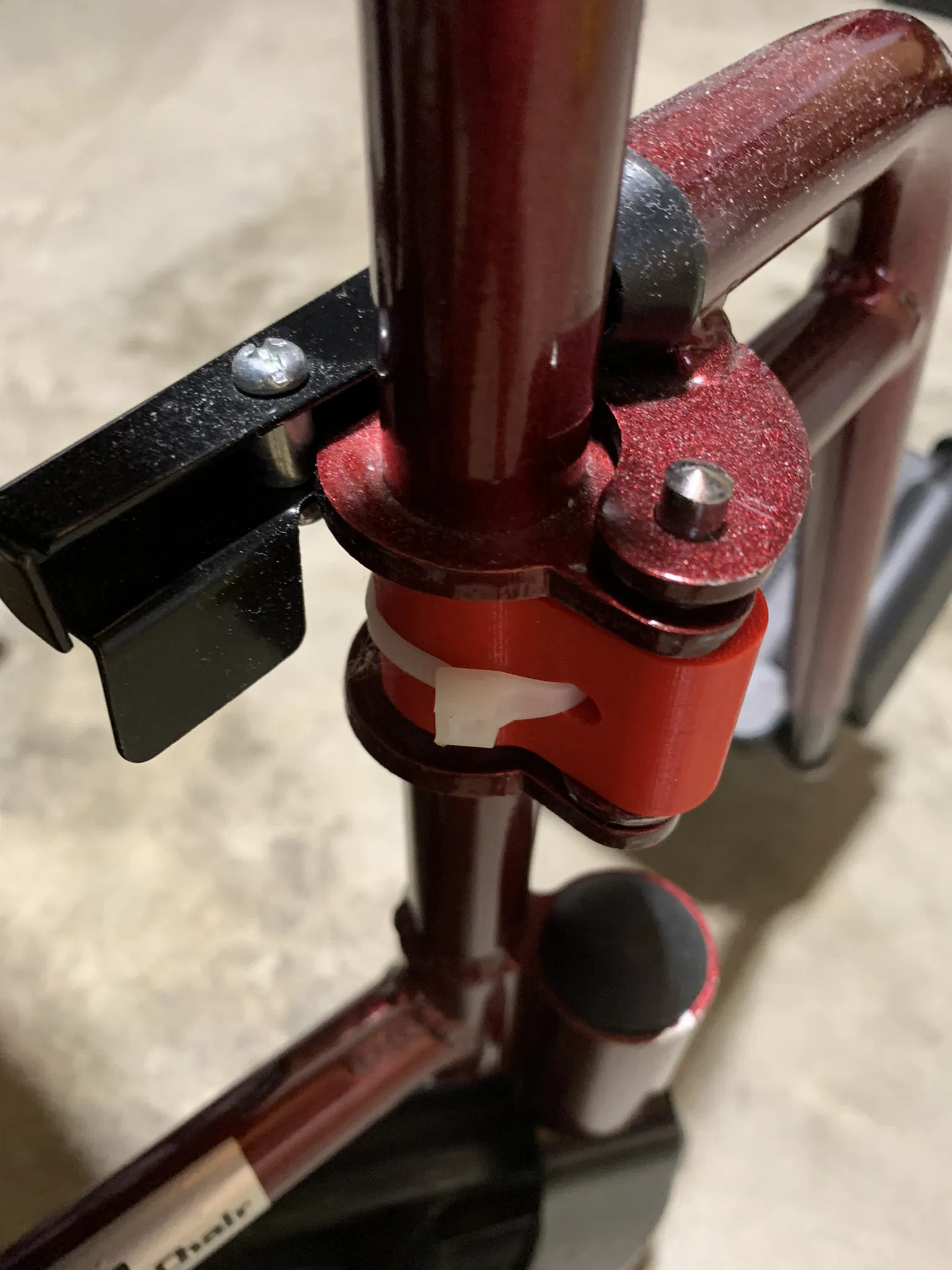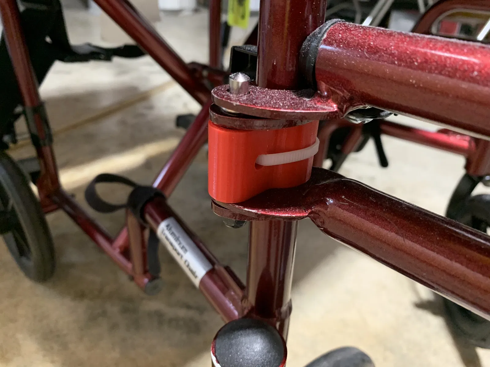 Cái kẹp này giúp giữ chặt chỗ để chân của ghế di chuyển Drive, khỏi bị tuột ra khi gập ghế. In bằng PETG, dễ dàng lắp đặt, có thể dùng thêm dây rút để cố định. Giải pháp hữu ích cho người dùng ghế di chuyển.