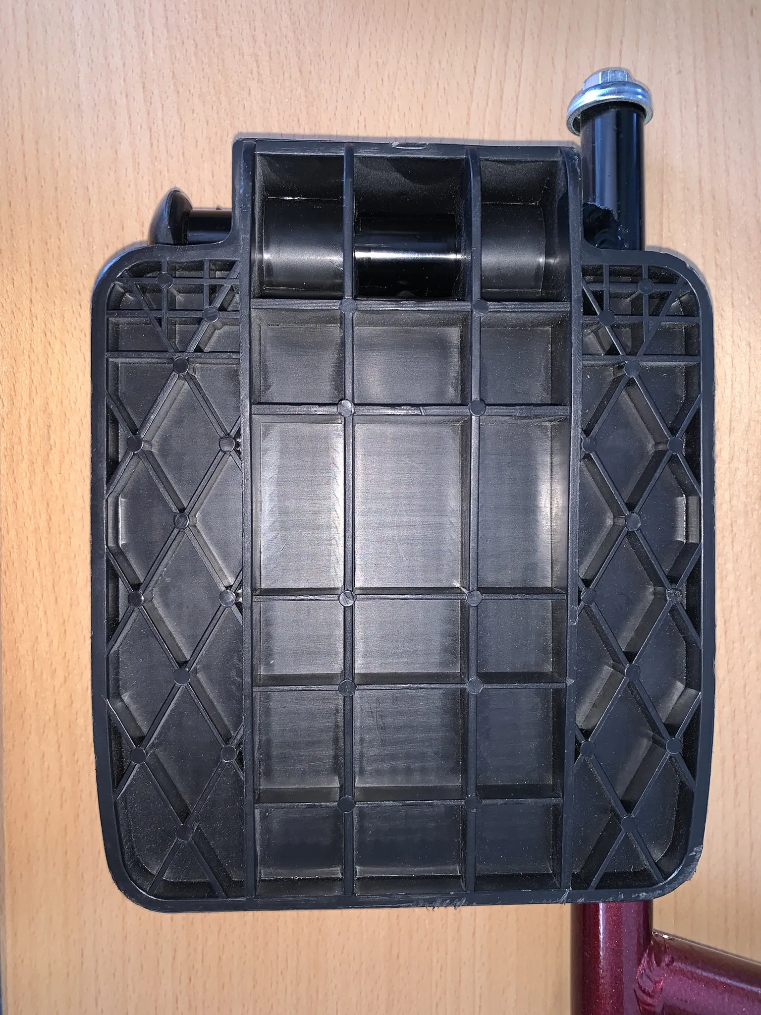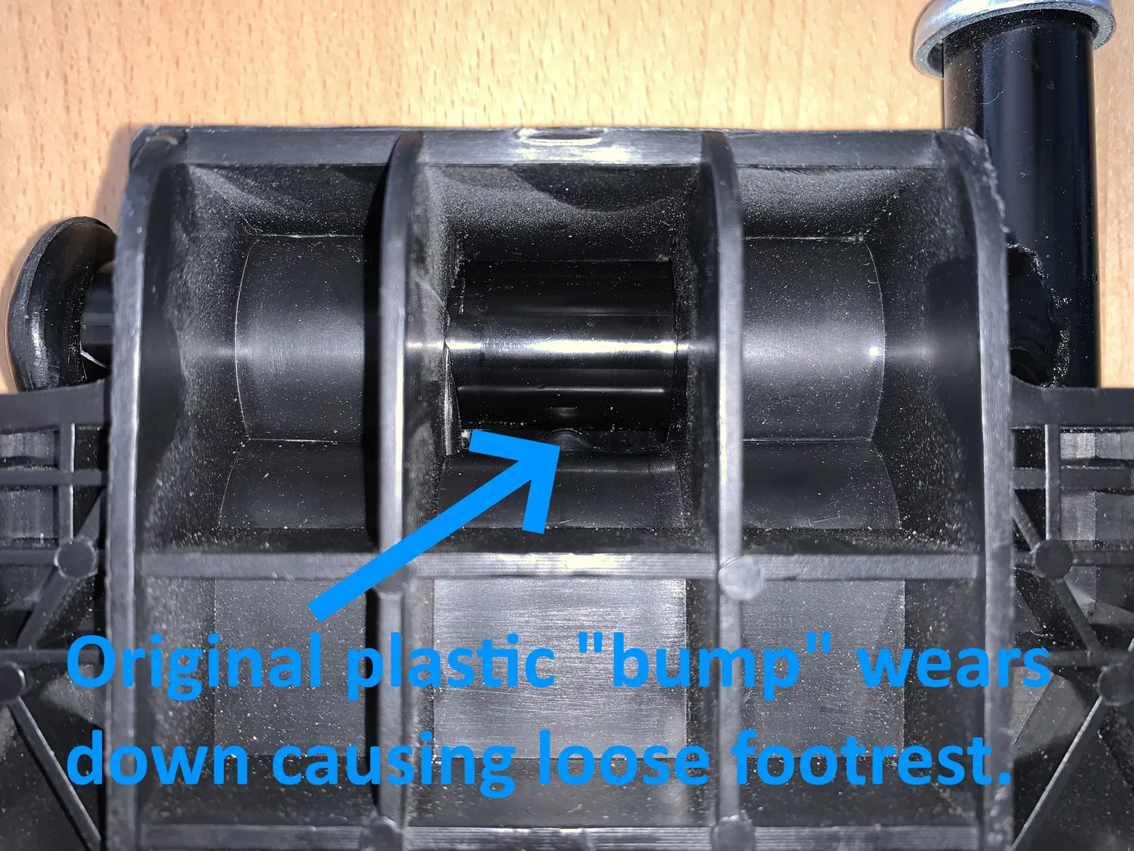 Việc bệ bước chân xe lăn bị sập xuống bất ngờ vừa bực bội vừa nguy hiểm. Điều này có thể khiến người ngồi xe lăn bị vấp ngã hoặc bị bầm tím. Sau vài năm sử dụng, đây trở thành một vấn đề thường xuyên khi phần gờ (như trong hình) bị mòn đi.