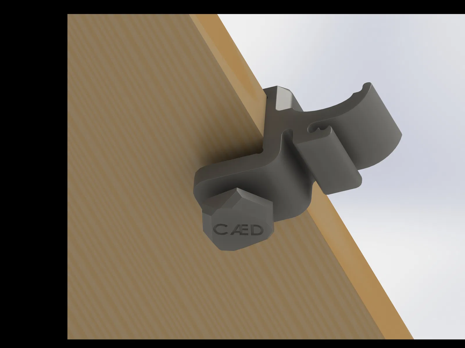 Bên cạnh đó, mục tiêu là cắt giảm kích thước ở mức hợp lý để vẫn đảm bảo độ bền (xem thêm lời khuyên in ấn) nhưng cũng trông bớt cồng kềnh hơn các loại kẹp tai nghe khác. Thiết kế này cũng có các rãnh ở góc để đảm bảo nó nằm gọn trên bàn ở cả ba cạnh kẹp, bất kể bán kính góc của bàn.