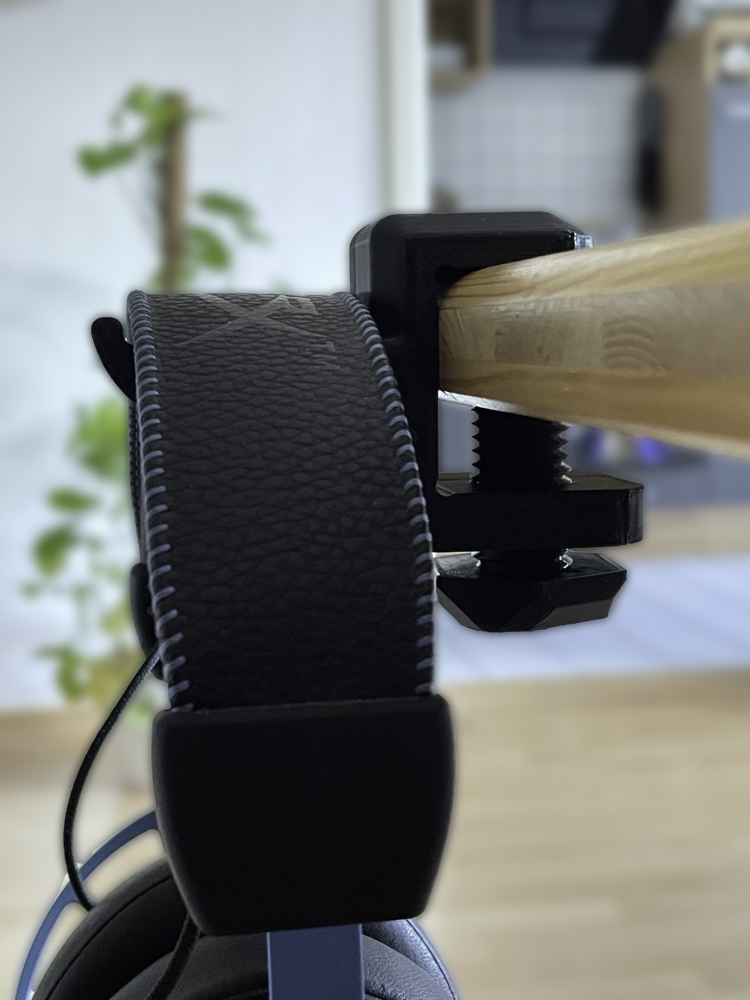 Kẹp giữ tai nghe với cơ chế kẹp vít để gắn vào bàn làm việc. Với cấu hình này, bàn có độ dày từ 16 đến 38mm đều có thể sử dụng được. Vít có đầu hình lục giác để tạo vẻ ngoài hơi khác biệt so với hầu hết các kẹp giữ tai nghe khác.