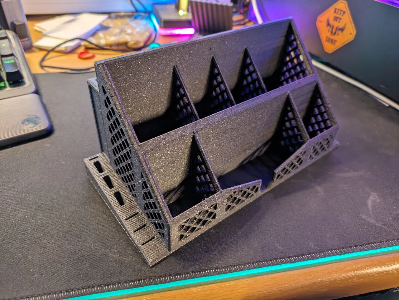 Một bản remix có chân giữ USB và thẻ SD ở cả hai bên, giúp sắp xếp bàn làm việc gọn gàng. Dễ in, không cần support.