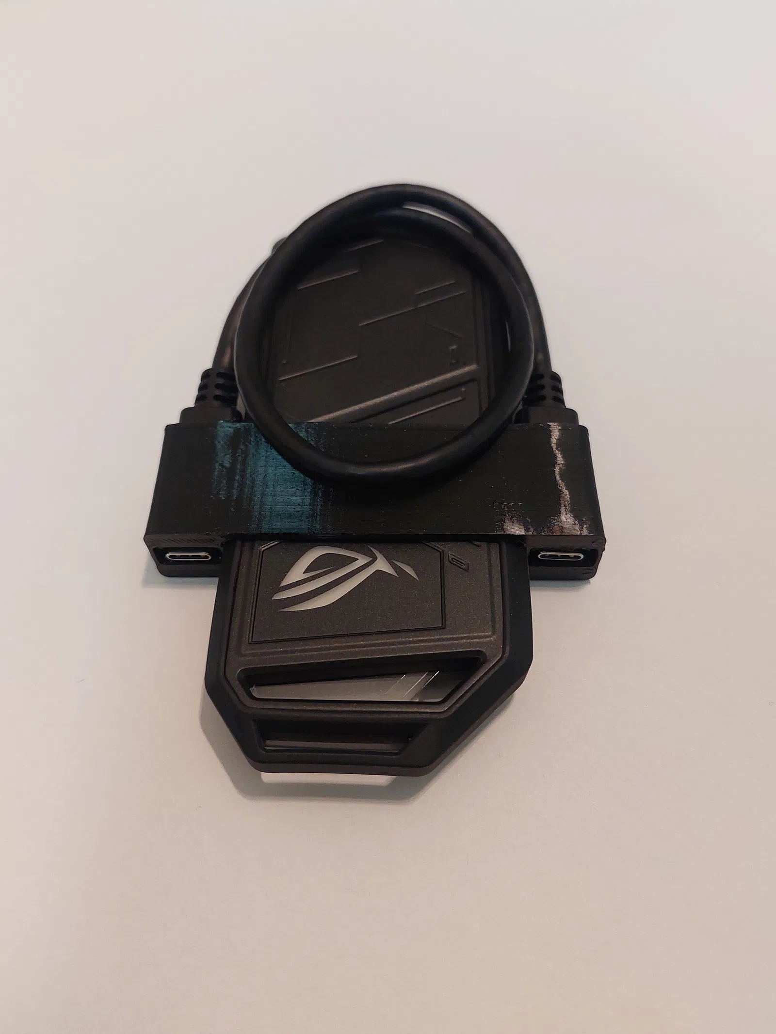 Tui làm cái khuôn này để không bị mất dây cáp. In bằng Fiberlogy Fiberflex 40D để tránh trầy xước ổ cứng SSD gắn ngoài. Độ dày lớp in 0.20 mm, độ dày ruột 15%.