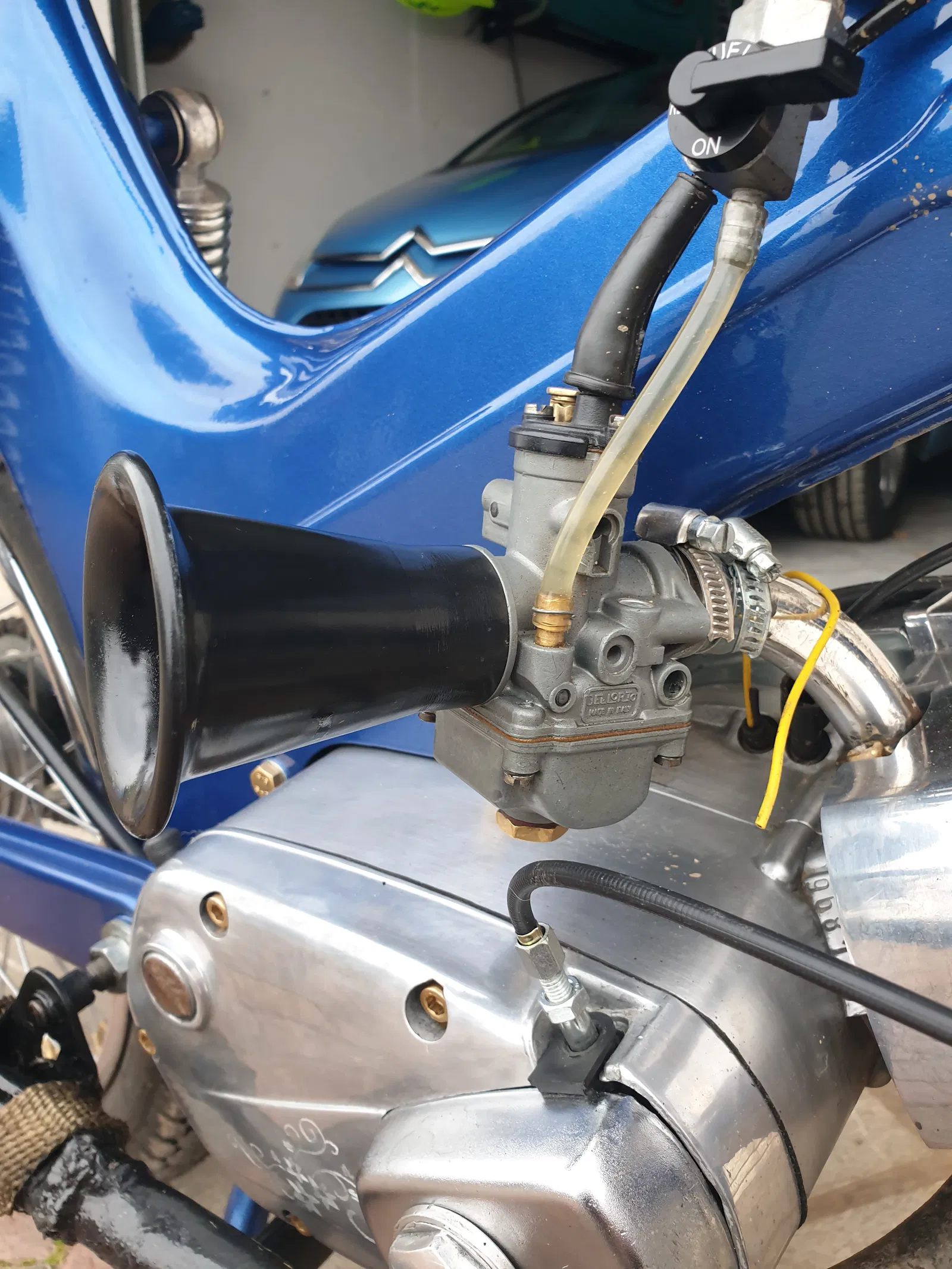 Cái này gắn vừa cho bình xăng con Dellorto ren 32mm nha. Mấy cái trumpet này in bằng nhựa ASA, loại nhựa này bền lắm, với lại có thể làm láng bằng acetone.