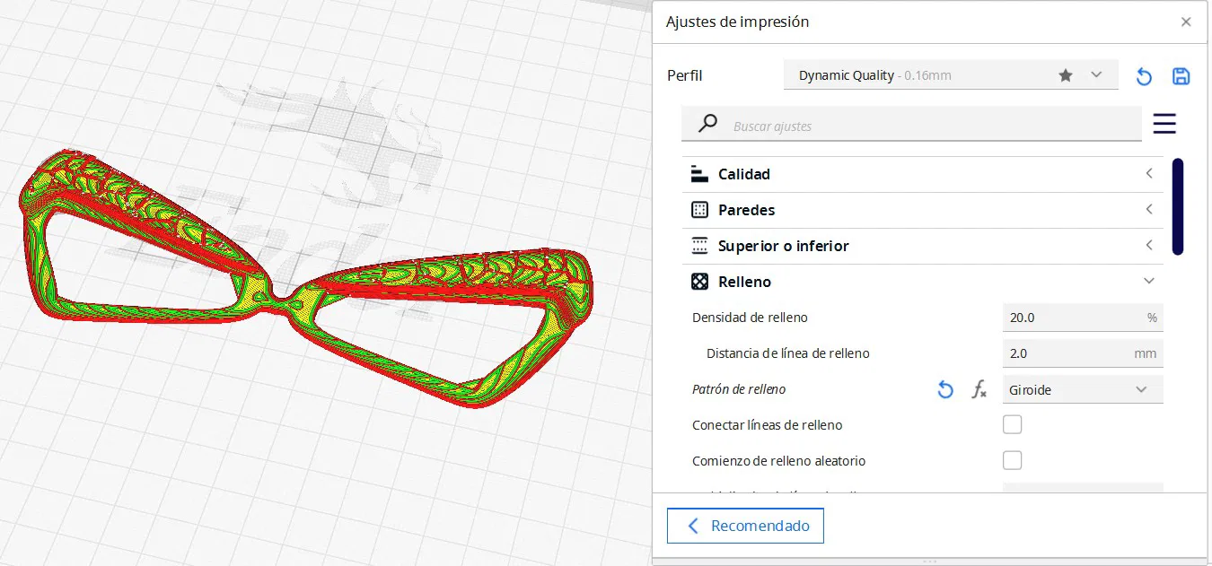 Đối với mẫu này, bạn nên làm cho phần mặt trước có kích thước 15 cm, in riêng từng bộ phận rồi cuối cùng là lắp phần gọng vào phần mặt trước.