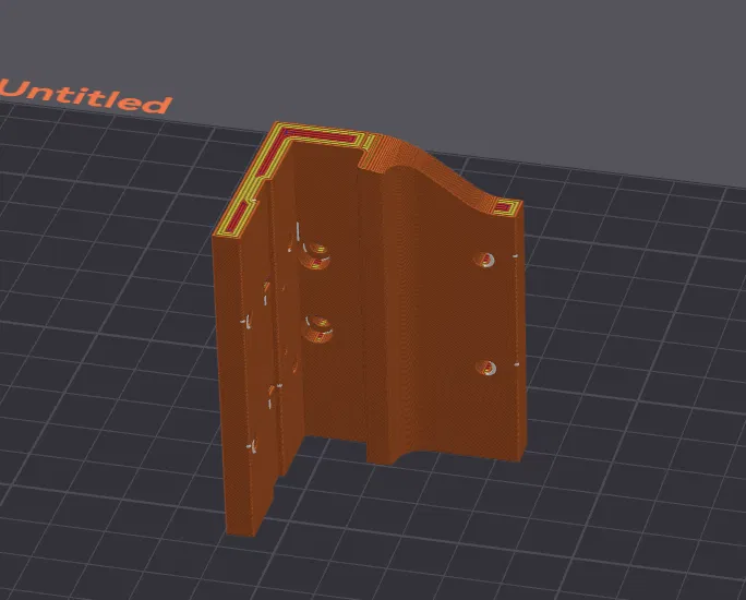 In không cần hỗ trợ (supports). Tôi đã sử dụng PET-G trong suốt với 100% mật độ ruột (infill), cố gắng để có được vẻ ngoài giống kính nhưng không thành công.
